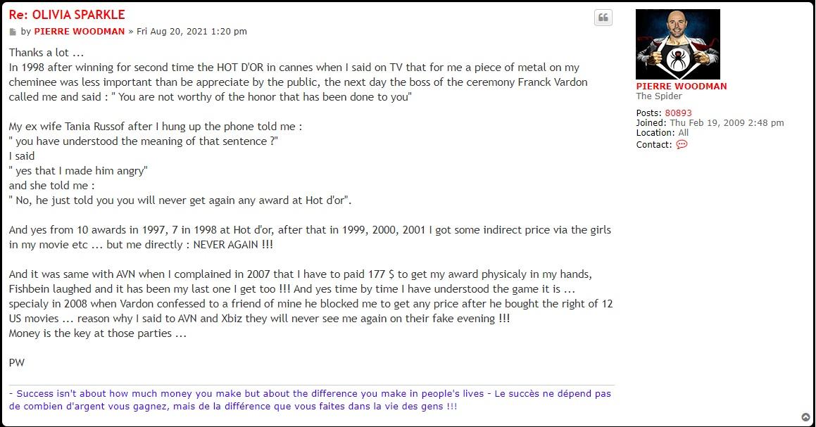He always lived in Eastern European countries, hiding himself and using all opportunities of corruption as much possible. Like mafiots they do.Politically he's licking the ass of Orban Viktor today on his propaganda forum, because he's hidden living in Hungary. I mean officially. His real name is different, not Pierre Woodman. Already many of us know, and probably officials also, since he had to.show up on Court.