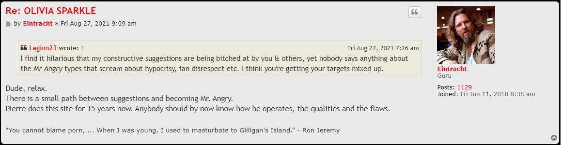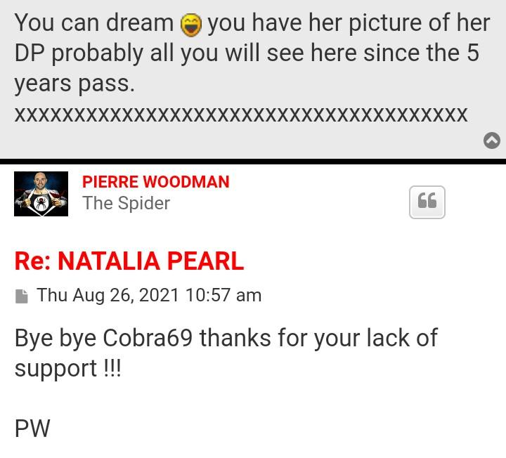 Ah Valencia, I see your Ralph and raise you Legion23! They are for sure the next members to get booted from Pierre's site. Legion23 has a very good point, and instead of sorting it, HE'S being made to look like the one who's being unreasonable!! It's a complete joke! And these aren't guy's who have just turned up to cause trouble Legion has 395 posts under his belt!