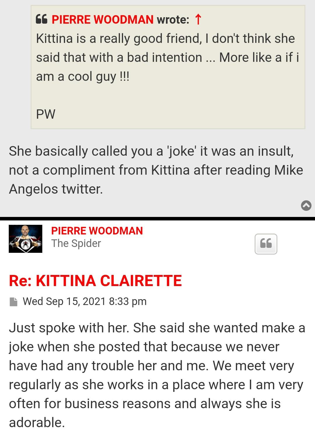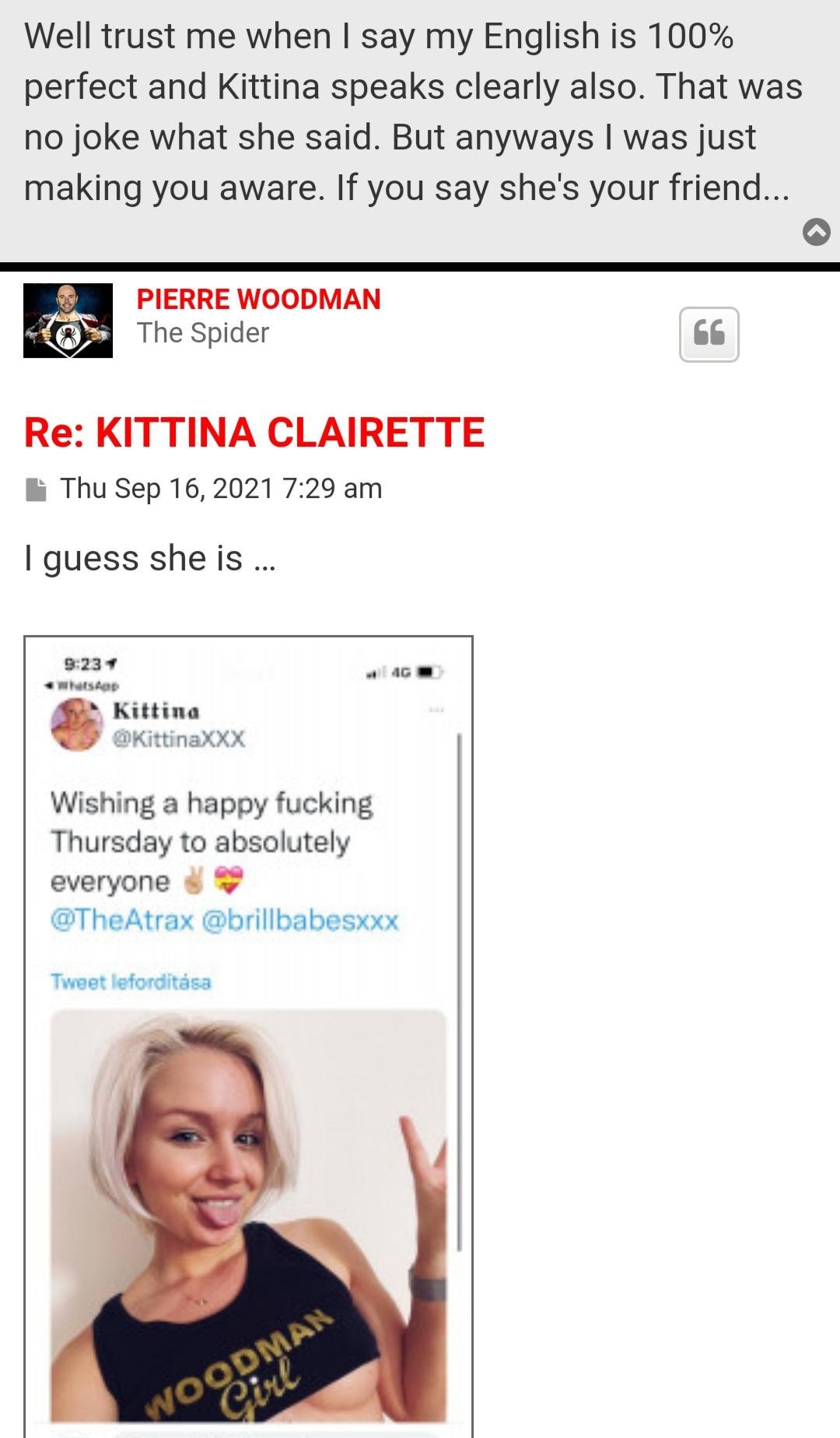 It's funny how all these girls who spoke bad about PW in the past is suddenly in the good books with him again. He either blackmails or pays them shit load of money. Latest post on his forum is about Kittina who once made fun of Woodman calling him a joke and poking fun at him,something which he stupidly interpreted as her saying something 'good' about him, when it was actually Kittina talking trash about him lol. But due to his French, he never understood the jibe that she chimed in on after Mike Angelo exposed him with Cayein Klein.He went as far as to ask her about Kittina about the incident and we all know ehat happened next, he threatened Kittina to the point he asked her to post a picture on [spam] to 'prove' he is a good man lololol. Why would she randomly post a pic on [spam] to say she is a Woodman girl.