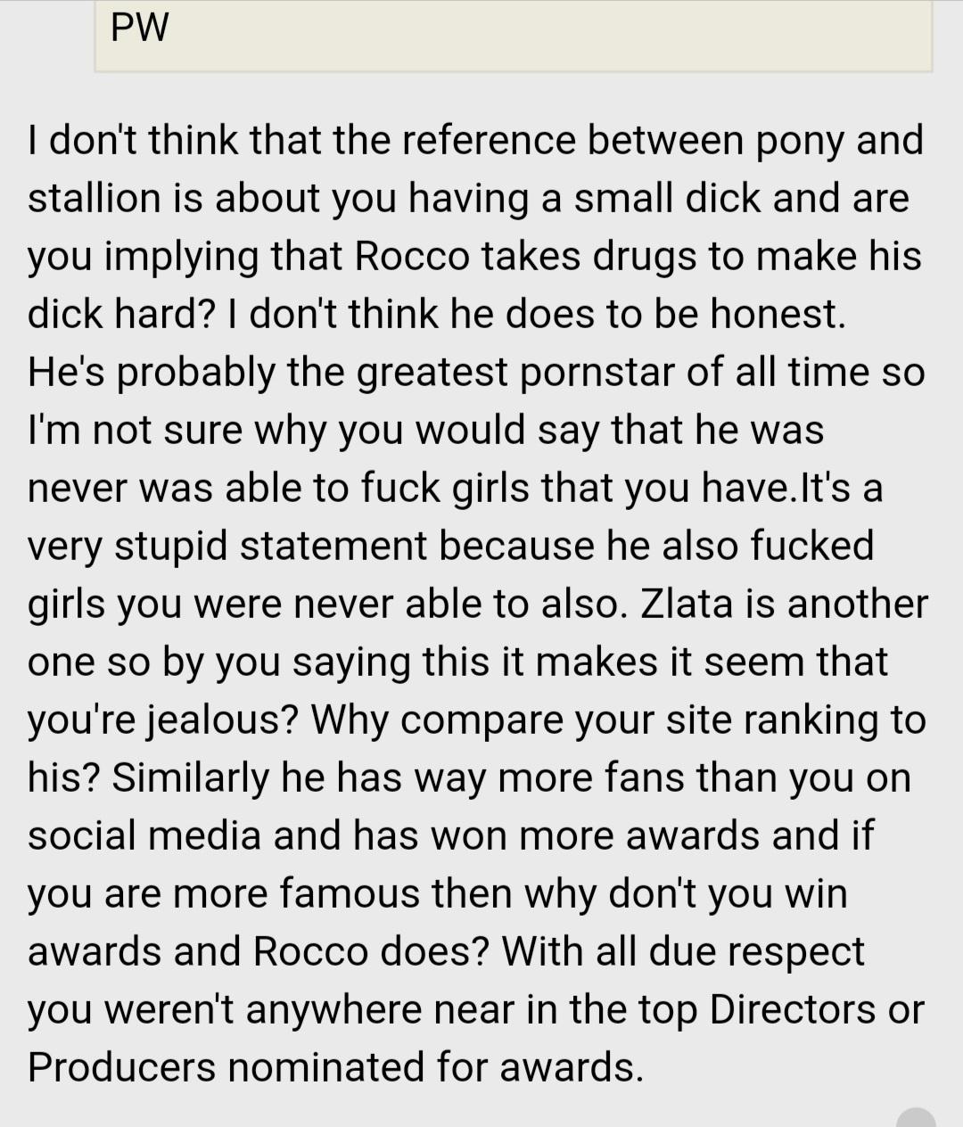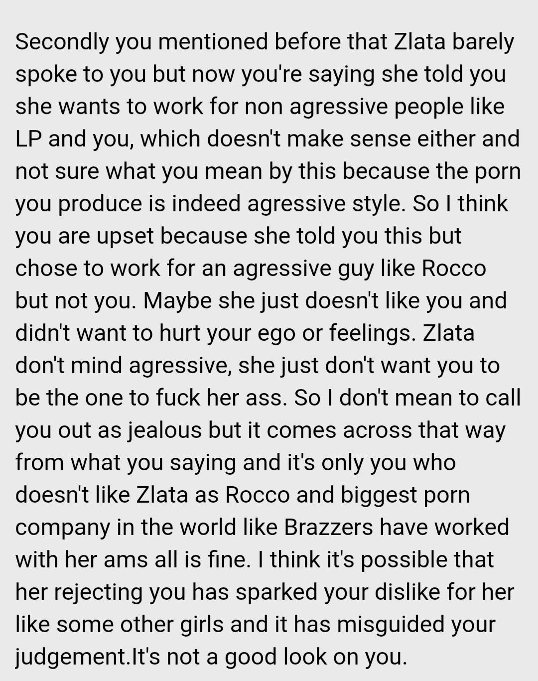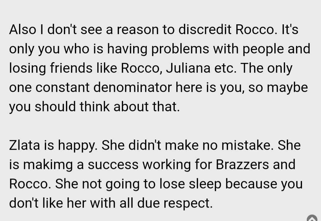 ValenciaCF wrote:Here's another perfect example of his jealousy and hatred towards others. The man literally cannot stand competitors who are by far better than him. He never misses the opportunity to try and brag about himself but off course he only speaks nonsense. He is obsessed and wants to be better than Rocco but he never will be. And when he said that Zlata wanted to work for him because he is non agressive I almost fell down laughing. The girl never wanted anything to do with you that's why he so mad about it. Now he make up lies she wanted to work for him and did the opposite that's why he don't like her. Off course it's a good point about ehy he always has problems wirh everyone including his ex friends Julia and Rocco. He is such a bad person. No wonder nobody likes him