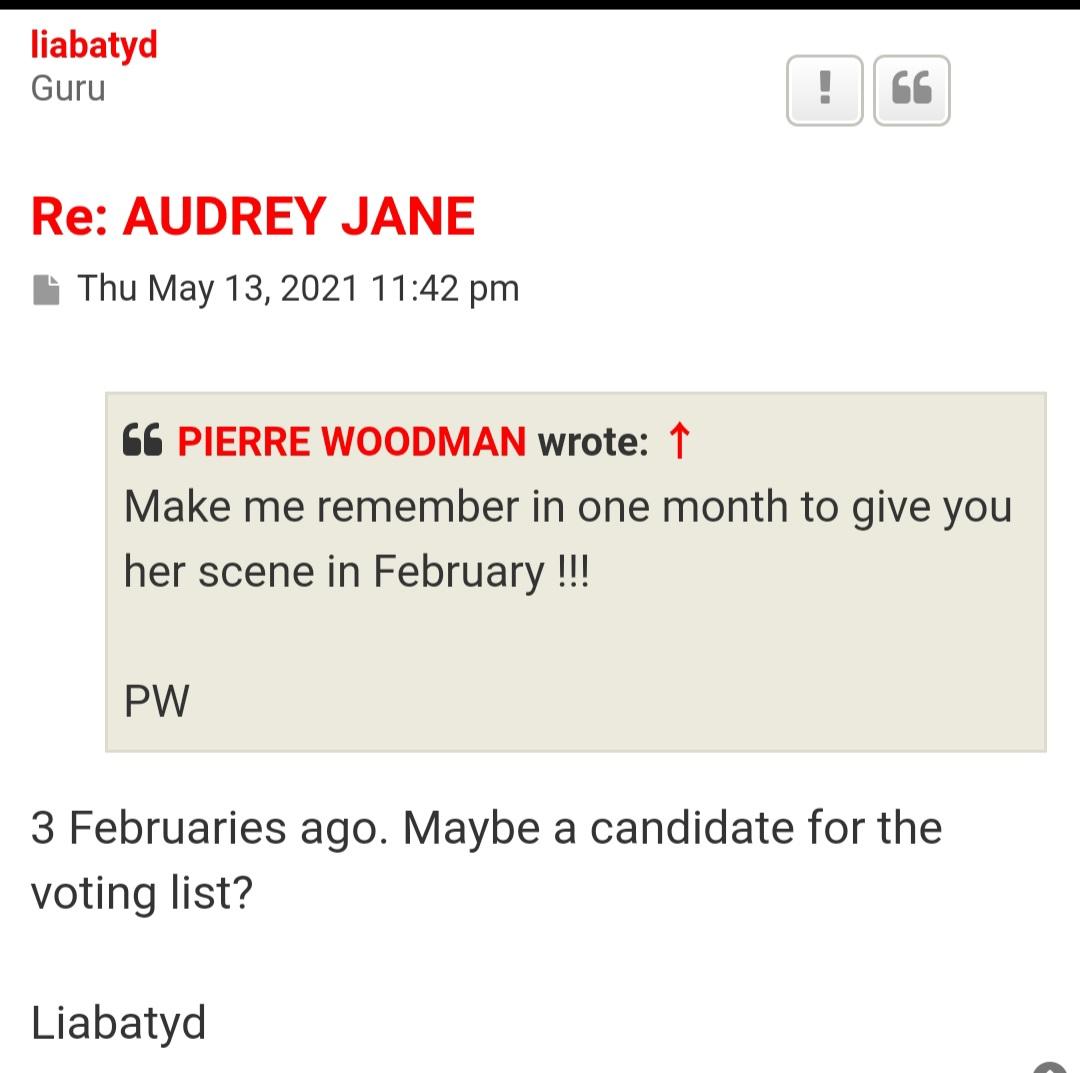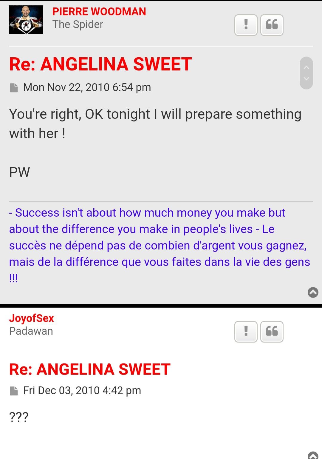 robin_reid wrote:Before Woodman says anything, I admit my mistake sorry, I forgot/did not realized, that she told me that she was 6 months without sex…