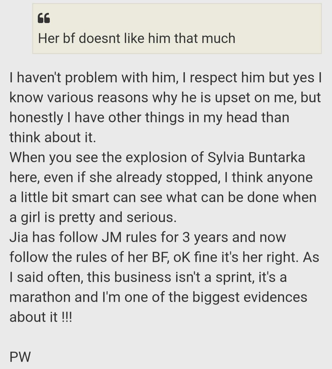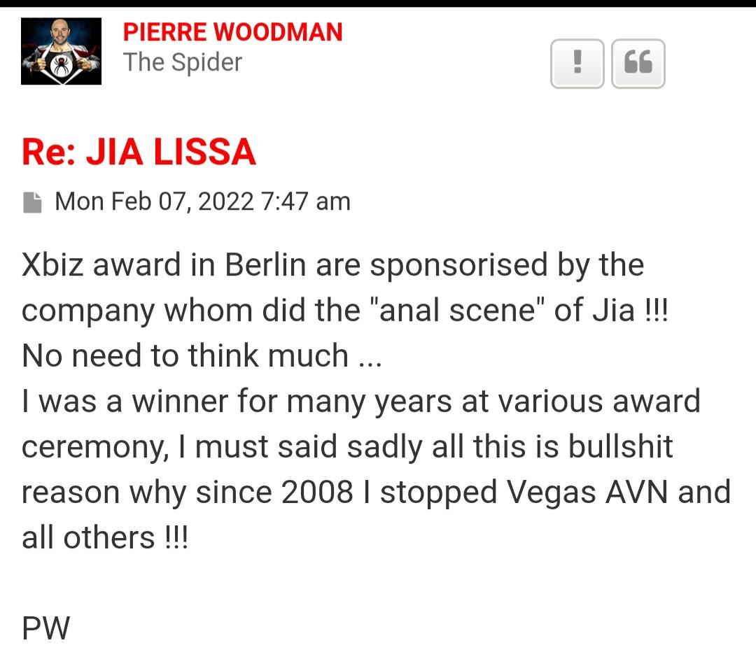 He is so delusional and bitter. It makes no sense when he says 'maybe her next step will be better and smarter' lololol wtf is this bullshit he talk. Jia Lissa already won AVN and Xbiz awards, including best female performer and best anal scene. She has hundreds of thousands of followers. I think she is more than smart to keep away from that idiot to achieve success the way she has. So what nonsense about being smarter when she's already achieved great success? What a sore loser!!! Never come across someone who has so much ego and self importance that he have to tell she started with him! So sge becane successful because of him??? She didn't even fuck with him. He's a fraudster, manipulator and liar