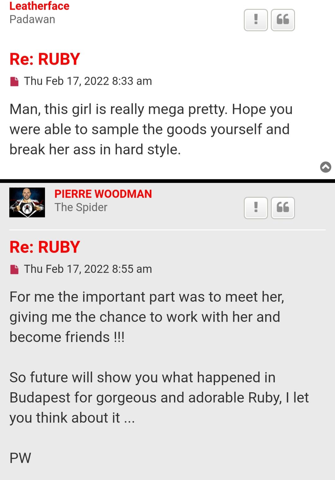 I'm always right. She don't want to be associated with that ape. He is watching this forum 24/7 :D and he was so paranoid because we so easily get under his skin all the tine, he became paranoid to send message on his forum he had nothing to do with it hahaha. Pierre Woodman the man who ends careers and pretends he builds them lololol how many girls he ruined so far in small amount of time. Or how many escorts he filmed shall I say.... Alisia,Sylvia, Ruby Rizzo, Bambi, Bad Barbie, nina lust, braza corazon, alexandra targaryen,sandra blue and now Rubi Sims.