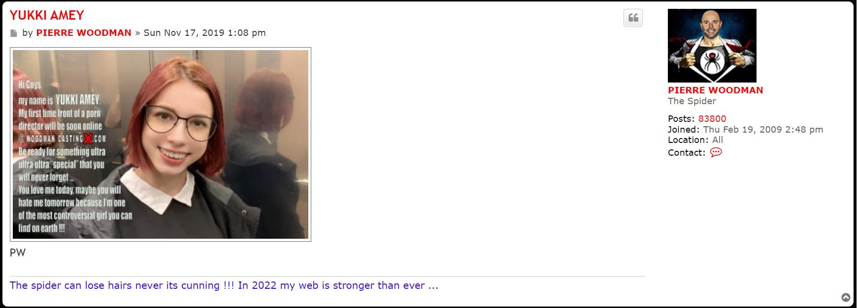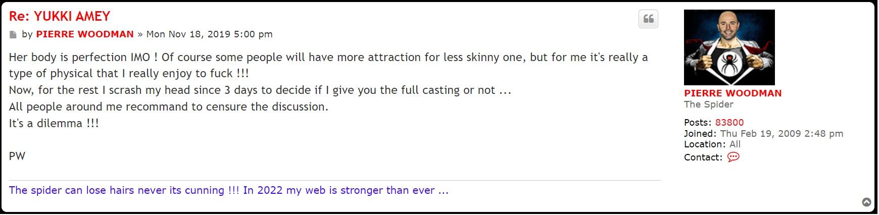 This is all thanks to "henryjames" who pointed me eventually to another of Woodman's failures "Yukki Amey". Now the conversation actually started with a member called "Gep" stating that the whole Sylvia Buntarka story didn't smell quite right which I obviously agreed with as I didn't like the smell of it either. But in henryjameses reply, he mentioned another girl who also managed to make Woodman look like a fool namely the Yukki Amey.