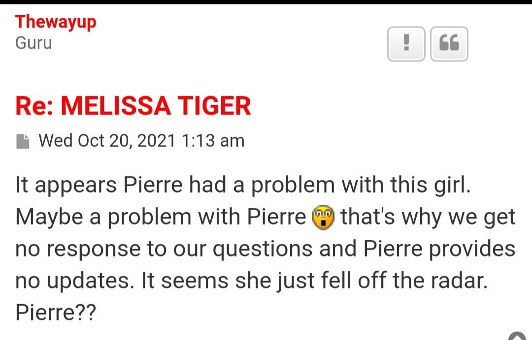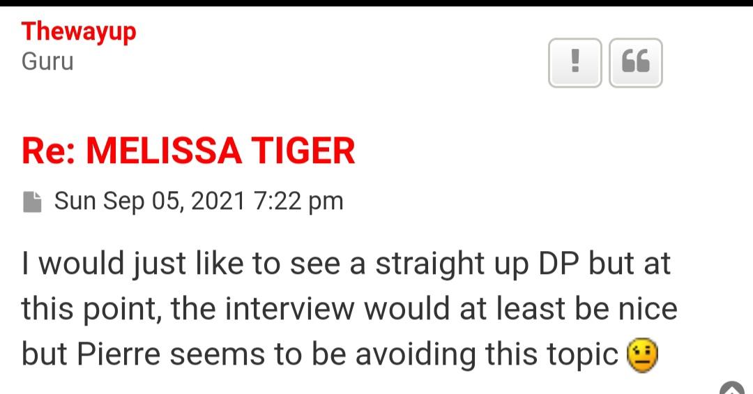 I also find it interesting after our post on Melissa Tiger here, the next day you decide to finally show her interview :D