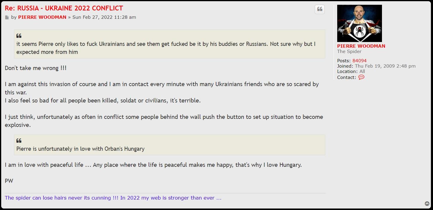Woodman seems to have tolerated a Russian progapanda troll in his forum (could also been a separate account of Woodman) who insulted a lot of members.
