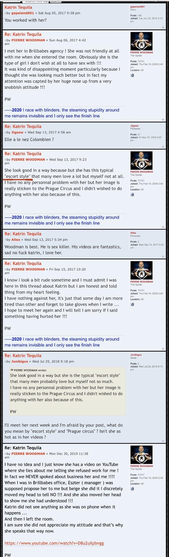 Just check his comments against a model like Katrin Tequila that doesn't even worked with him, they just coincided at Brillbabes office. Insulting to her by telling that she is "scort style, huge nose, snobbish attitude...” If I was the agency, I don't allow a client like this one put a foot in my office anymore. But as always they don’t care, the money and the shady deals with him are more important than the models