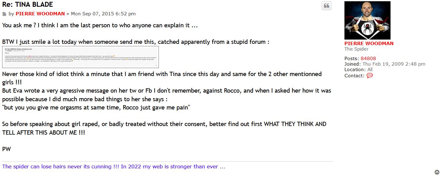 Re: Pierre Woodman: "I am a bastard and break the will of girls"