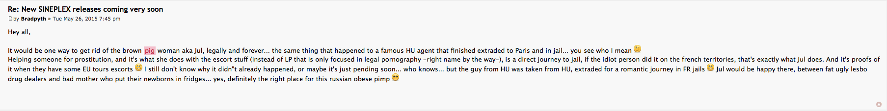 Anyway, you wanna know pierre andre nicolas gerbier's vile opinion about his enemies like Juliana grandi???? Search for his fake avatars!! Simple as that!!!