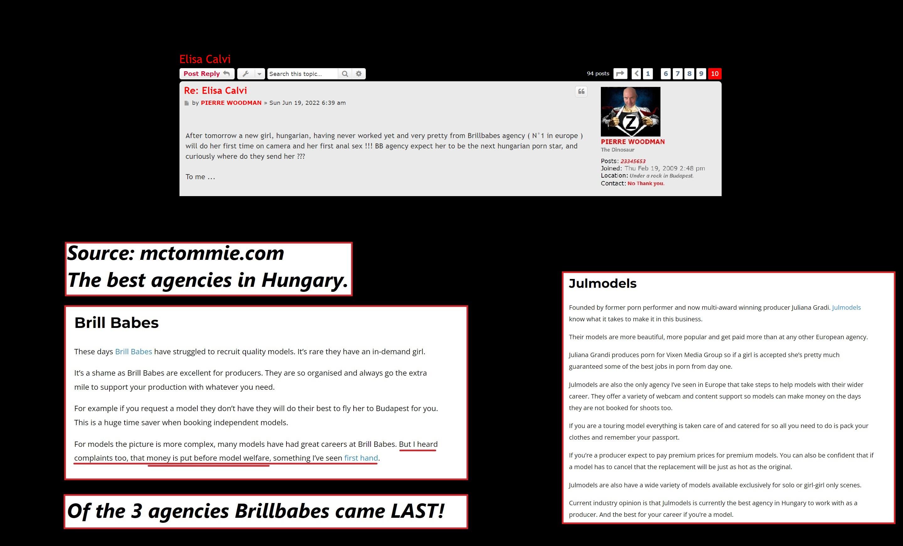Lets be clear. This girl never came from any agency. They use Brillbabes as a smokescreen to hide all the escorts he casts!!! Confirmed by another user as well that she escorts and is only interested in money. So now he have to come up with fairytales to bluff his members. It's hilarious! WOODMAN you are filming escorts and you know it. You can try and hide it, but you do a shit job. We're always one step ahead of you.