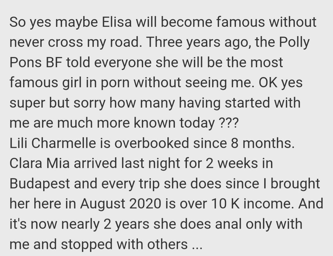 The girls' orgasms are also fake and staged in advance, he tells them before to start that they must have it. I know it from several models that in the past went to Budapest thru me and they told me that.