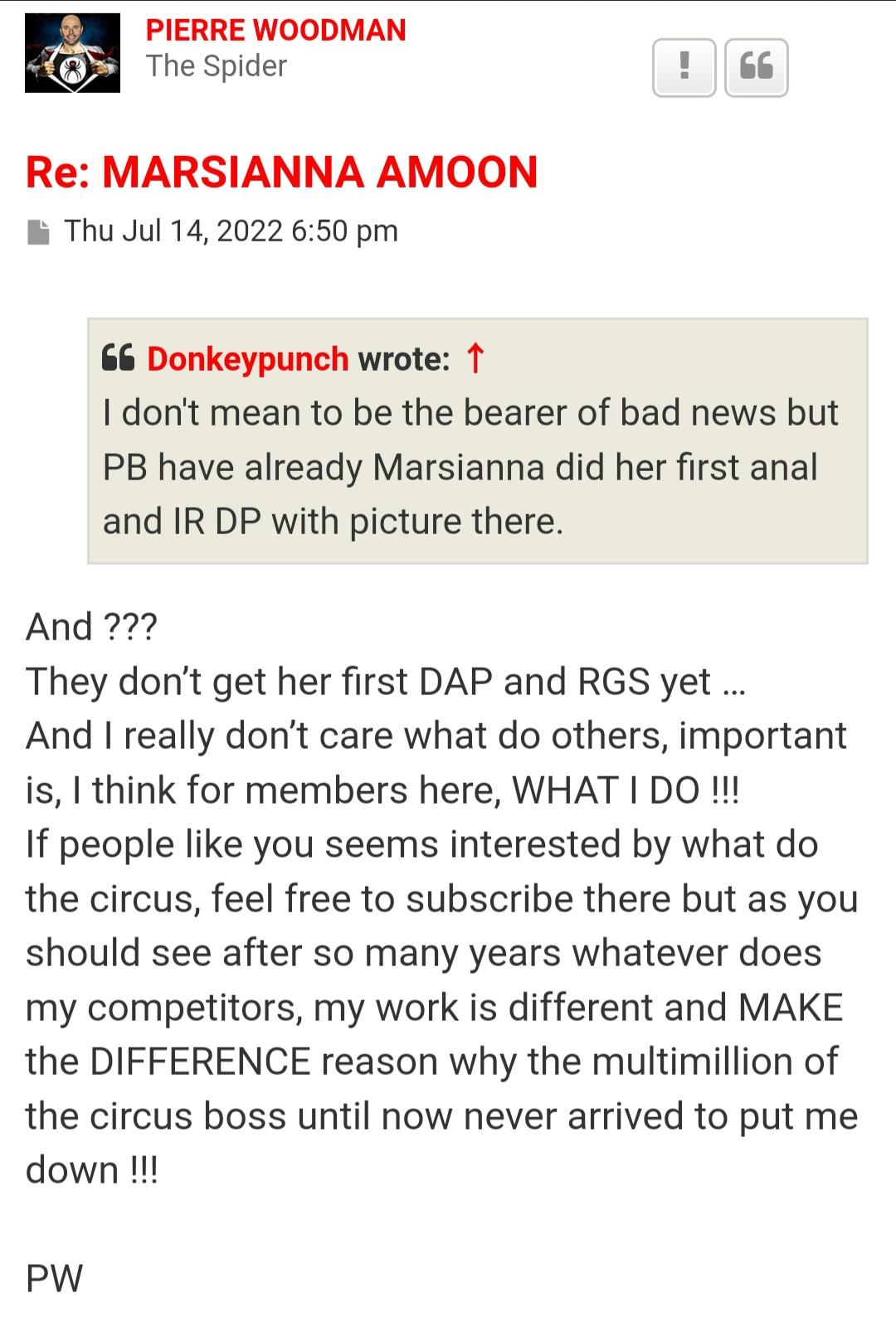 He is always bragging that DAP is not an important exclusive for him but he's quick to tell it that Marsianna did it for him but when other girls do it here first, then hecwill talk about circus acts or he will talk about his RGS :D :D :D and how here is not real because of the water story. What a clown this man is. Its only normal a company try and make the job easier for the actress, but this man want the girl to suffer with his rotten piss just to tell it was rral. WTF kind of logic is that?
