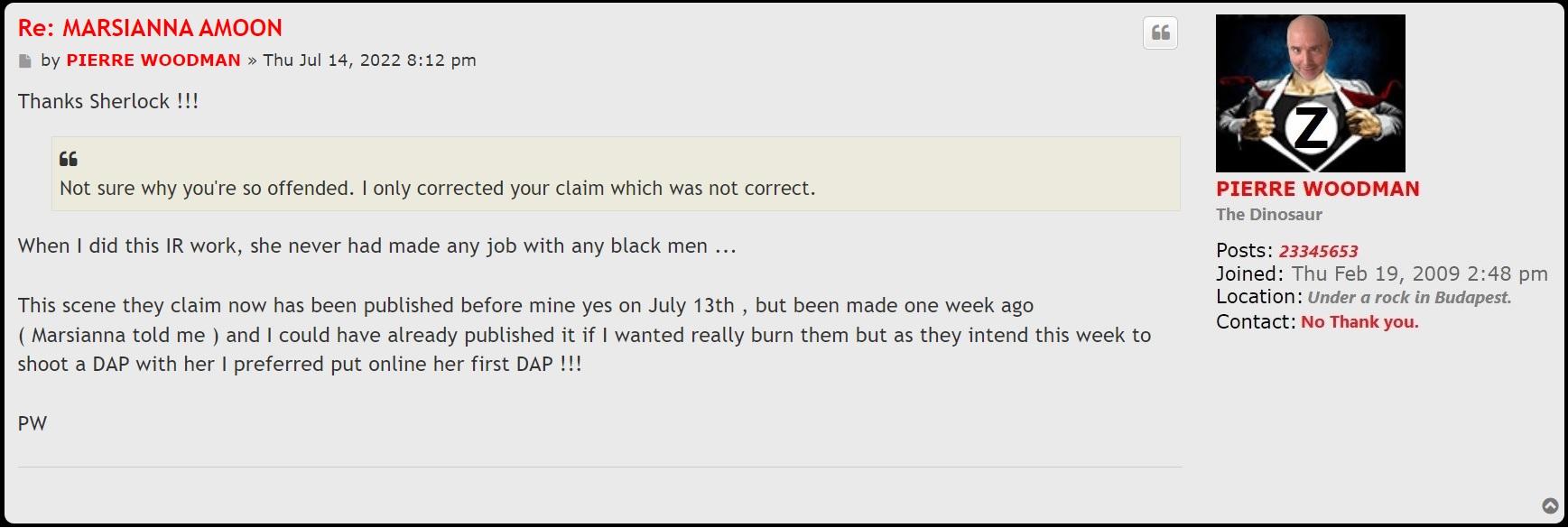hahahahah I don't know if seriously Pierre Woodman believes the crap he says and if there is seriously anyone so unintelligent as to believe his fairytales.