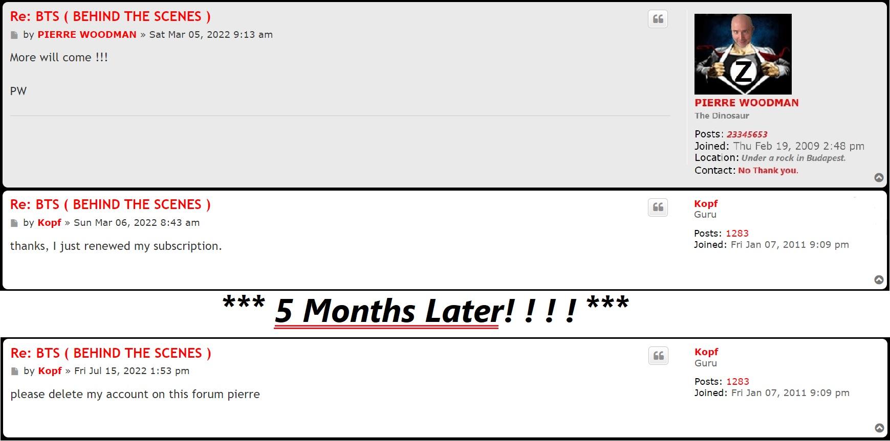 Well done "kopf" let's hope a few more follow your lead, believe me, you aren't missing anything Woodman has been lying to you for years and now he deserves to reap the whirlwind.