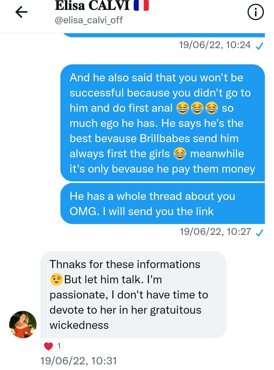 To me the situation seems very clear. Now with experience knows how the industry works and knows that it is better to stay away from certain toxic individuals (especially if he is ready to spread lies just because he hate a certain production/agency, look bambola, or always ready to thrash them calling them big bitch just because they worked with competitors and said no to him, look Elisa calvi, completely delusional this old fat man) who exploit your weaknesses to seek personal benefits.