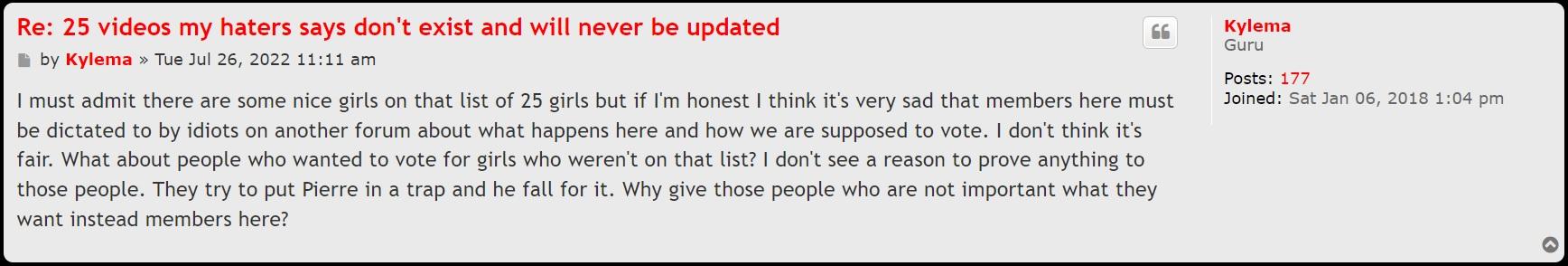 Well that's the way...just showing the shit that HIMSELF say on his forum.... about girls, others agency, competitors, directors, wheh he show all his omophobia etc.