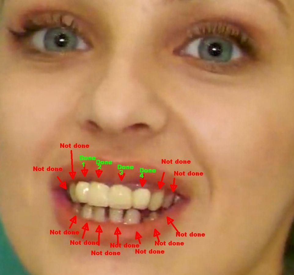 Must be the same cheap dentist who learned to do it in prison with fellow inmates LOL....What a shit work, just like nikky anderson already said years ago LOL.