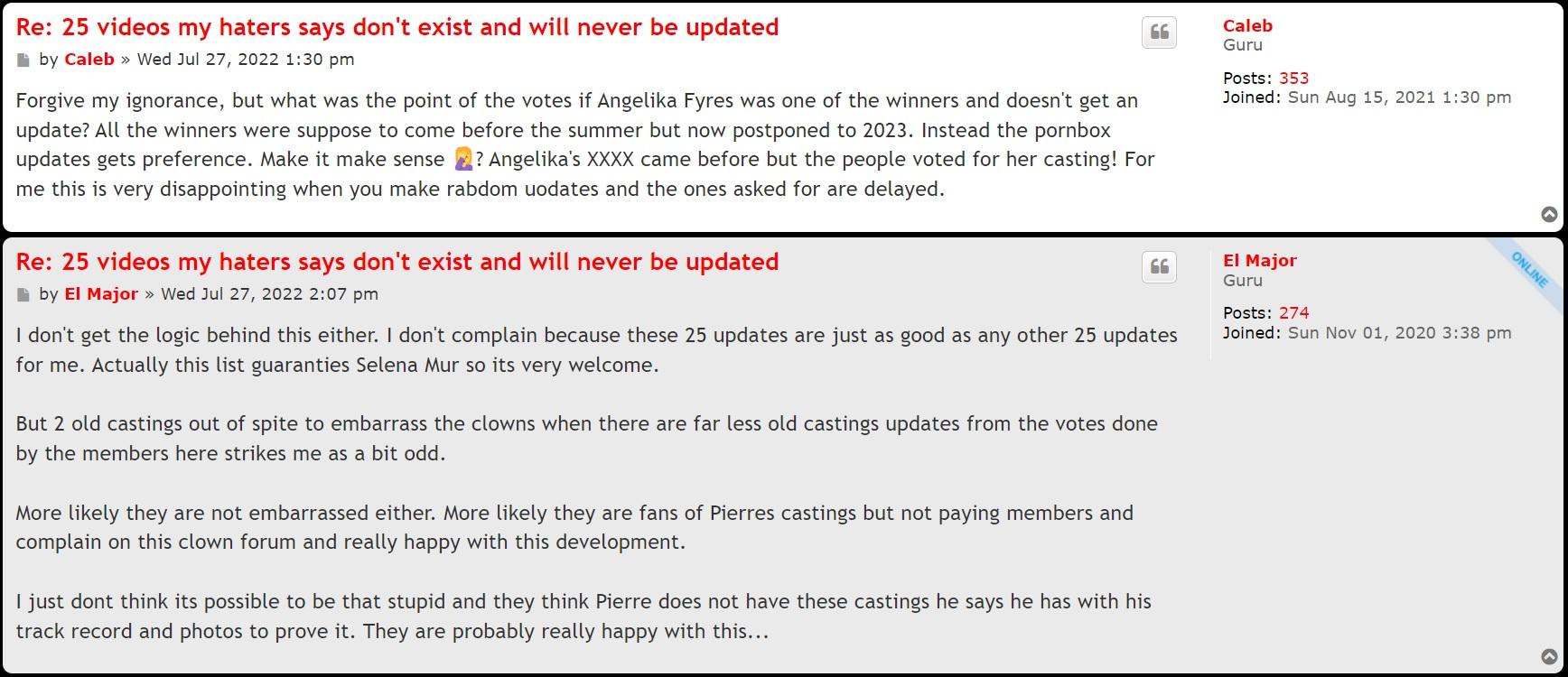 What's more important. You, loyal members who have been paying your subs month after month? Or some stranger who's very successfully goaded your insecure "master" into showing ***25*** castings without paying a single dime? (Not that he's shown any yet)