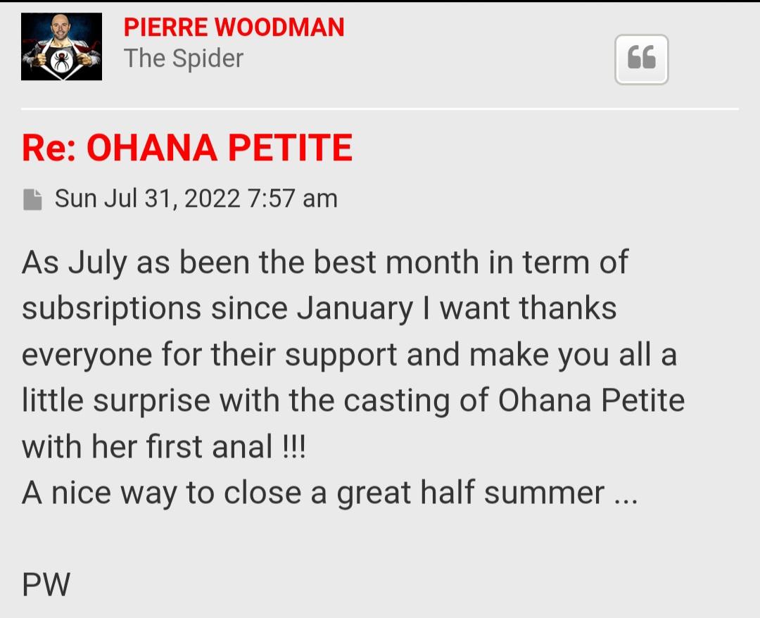 Omce again he proves what a fool he is. Pretending he releases the casting of Ohana Petite because of theor support. Bwahahahaha, meawhile it's because he discovered someone else put some anal stuff online. :D :D :D his updates are a reaction to his competitors, ot out of the goodness of gis heart. He don't care about his members. Trting to fool them into thinking he does something good for them when in actual fact, he only did it for his ego .