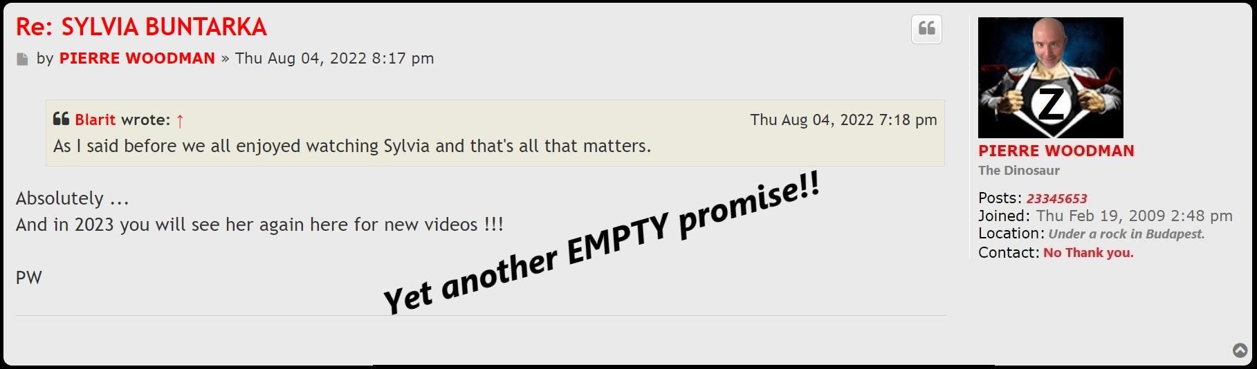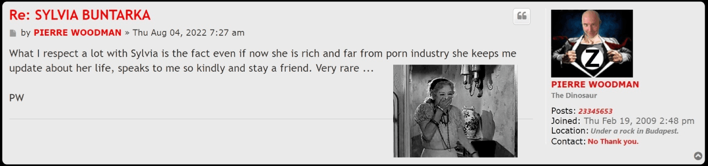 When he said he had sex with Sylvia Buntarka 3 times off camera after she finished porn, I fell off my chair laughing :D :D :D he believes his own lies and his members believe his bullshit. When she finished porn, she immediately skidaddled to the Maldives. How he had time to have sex with her 3 times lolololololol. Clown makes up so much faje stories to inflate his ego. Does he really think that people will believe the crap that comes out of his mouth...