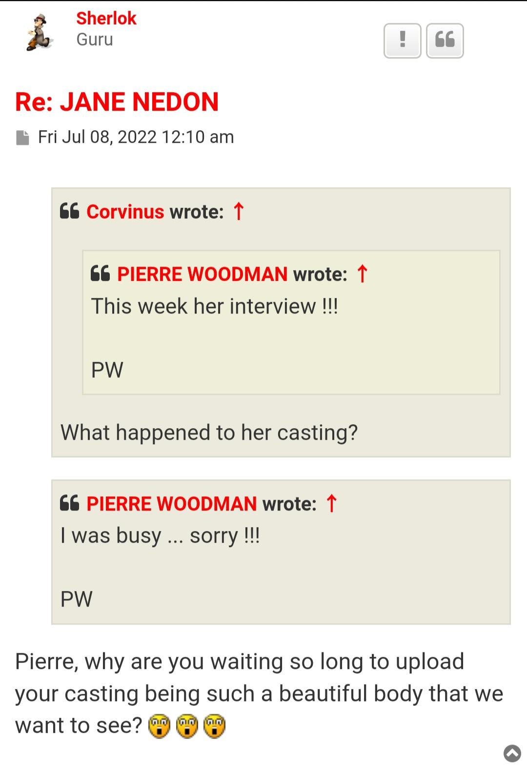 Well, hang on Valencia. Now neither you nor Woodman's loyal followers can possibly expect Pierre to give you Jane's casting when he's already busy doing a little 25 movie favour for his greatest critic can you?