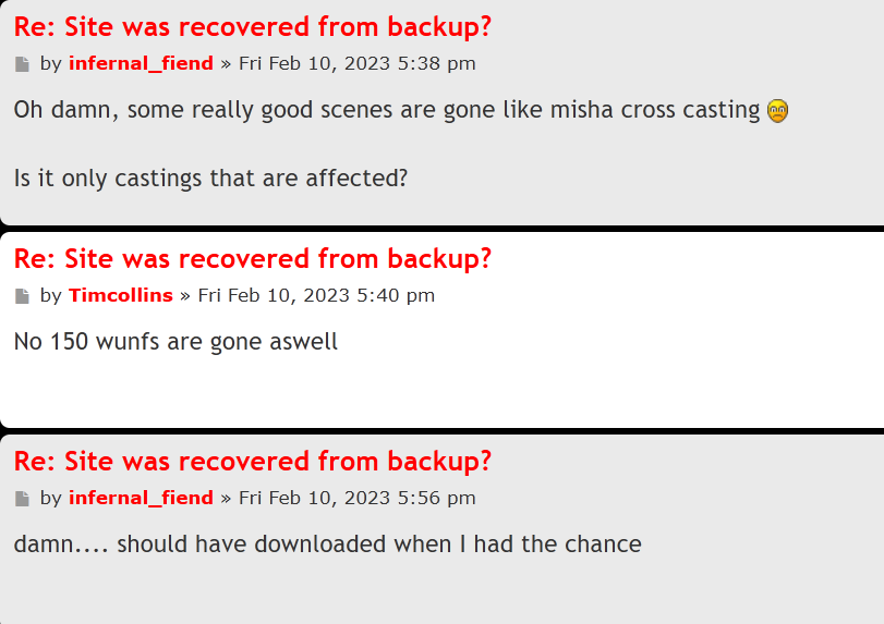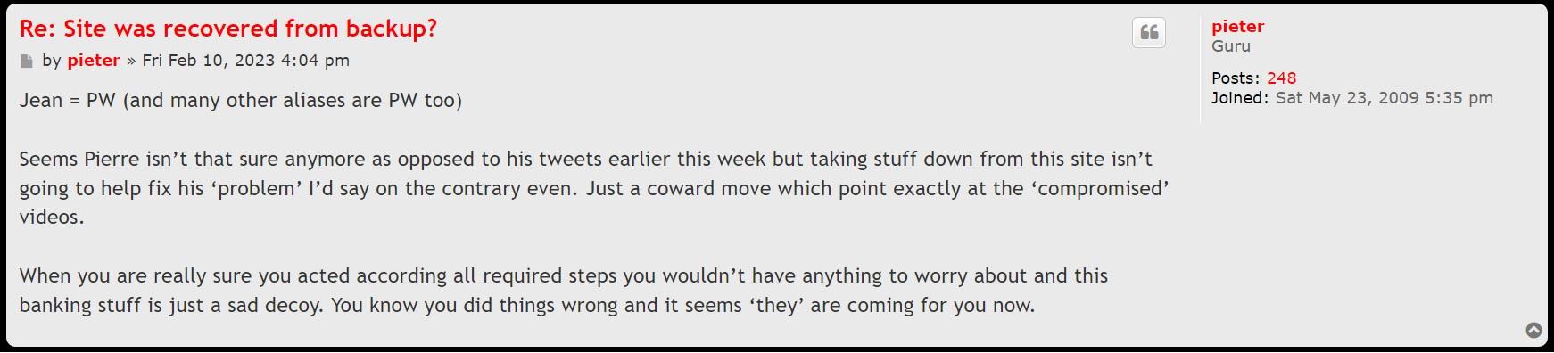 Now, it would be interested to have a full list of the videos that have been deleted by gerbier and contact those girls to see if they can have the cops put handcuffs on that guy!!