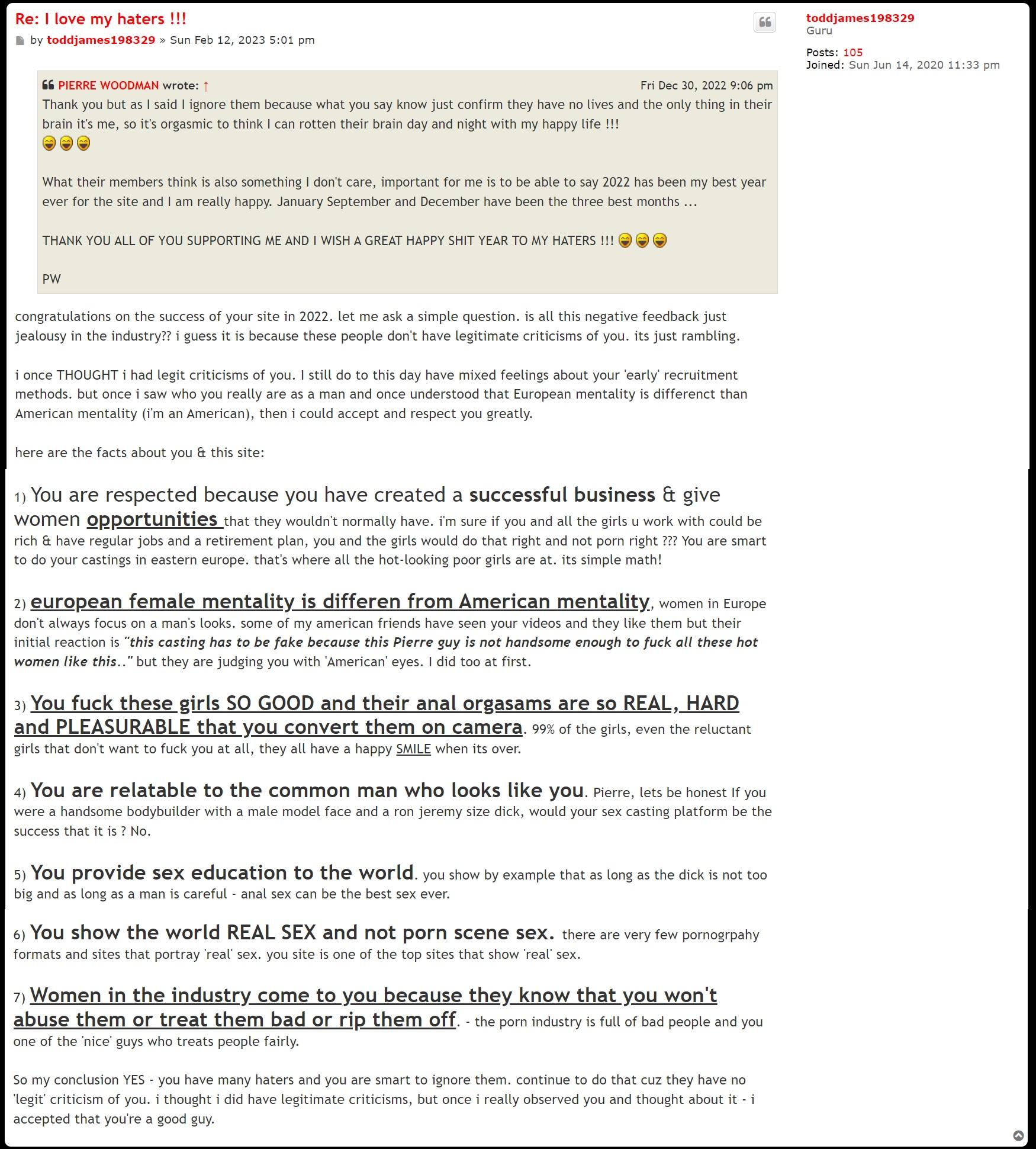 Re: Pierre Woodman: "I am a bastard and break the will of girls"