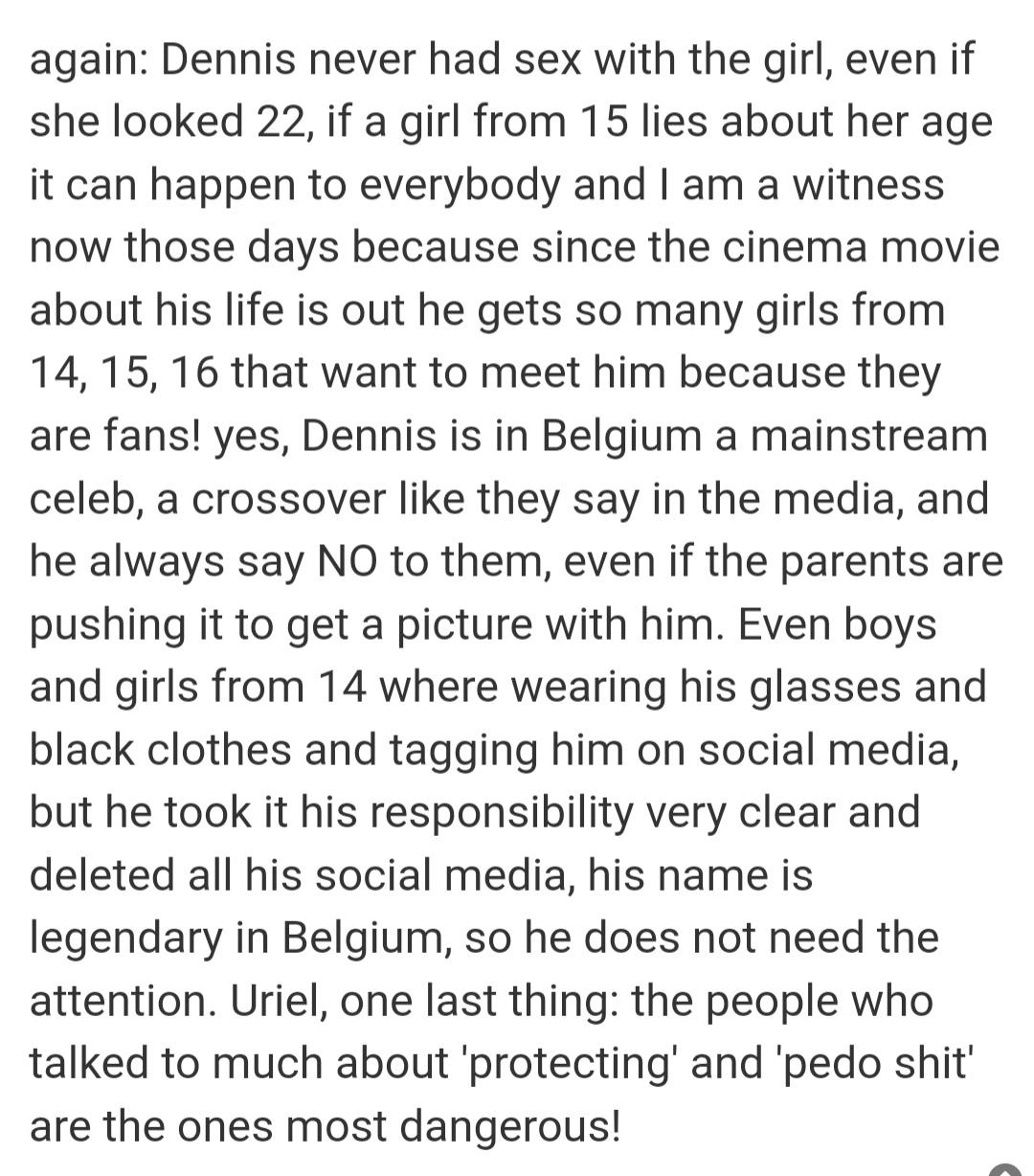 He wants that Slovakian chick to pay a massive price for her deadly moment of folly, but he shrugs off this pathetic minor celebrity of the Belgian underworld who likes to stick his cock into fifteen-year-olds.