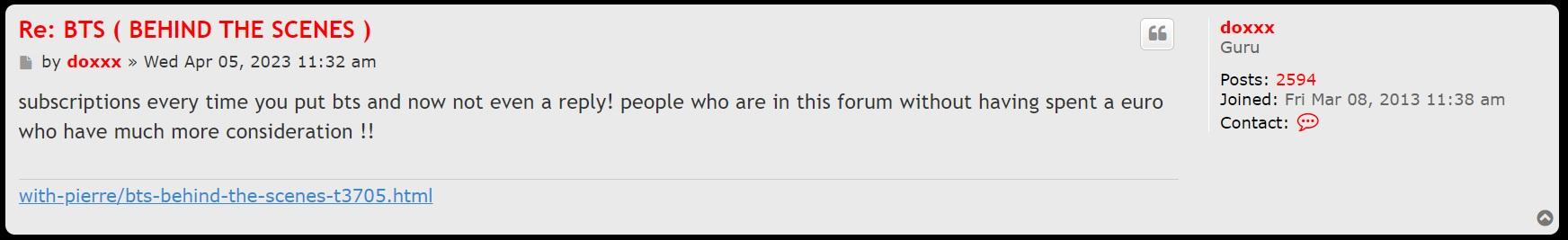Similarly, I take pride in the fact that I pissed off his ego enough to make him post a whole load of videos he probably wanted to keep hold of. It's ironic actually because only this morning "doxxx" was complaining about people on his forum who don't pay any money but get videos suiting their needs when a paying member like him gets NOTHING!