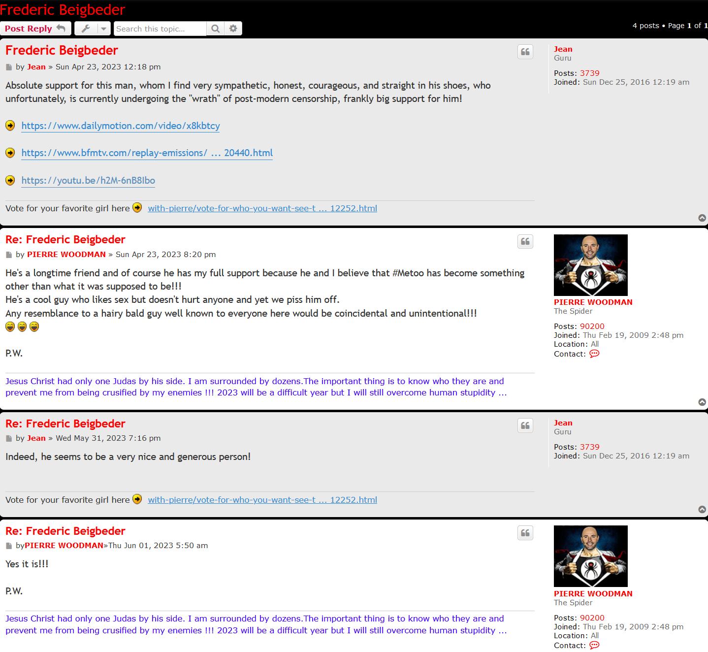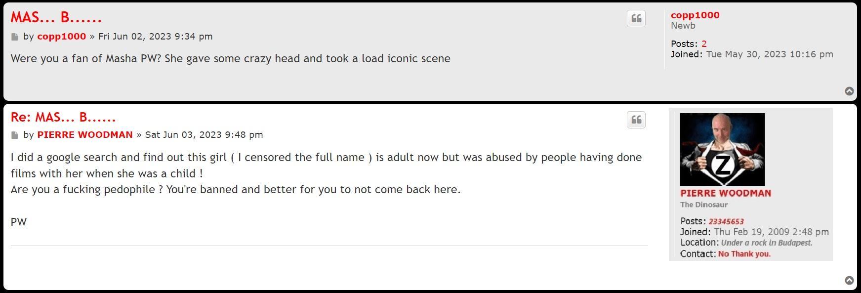 But it appears that Pierre has pulled yet another (1) post member from his little Troll-farm to make a point about him being a champion against paedophilia, and once again taking his members for mugs.