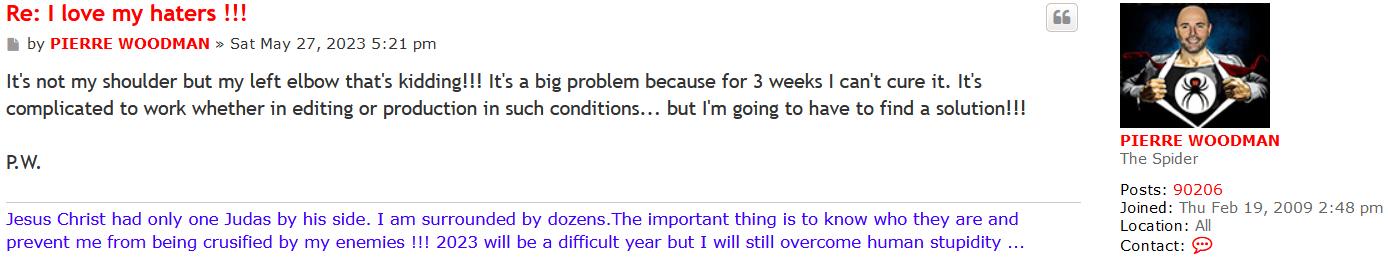 Everybody with a brain who has followed gerbier's troll forum for a certain amount of time and knows his modus operandi and sees the common forum patterns/language/punctuation, knows that copp1000 can only be pierre woodman himself (aka Mister HOCD).