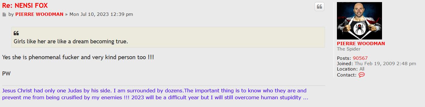Panorama wrote:From what I can remember Stacy Bloom had mental health issues before she met Woodman. The only crime here (which is bad enough in itself) is the fact that Woodman KNEW she had these issues and yet still got her to perform as he has done with other models.