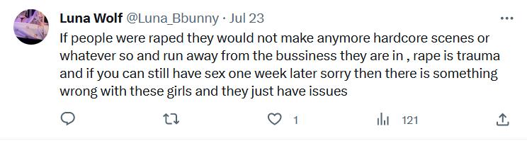 BlueShadow wrote:And this is one of the reasons why girls (like Josephine Jackson, Emma Hix etc.) expose only after some time their true feelings about that scene: bad experience, was stupid, uncomfortable etc.