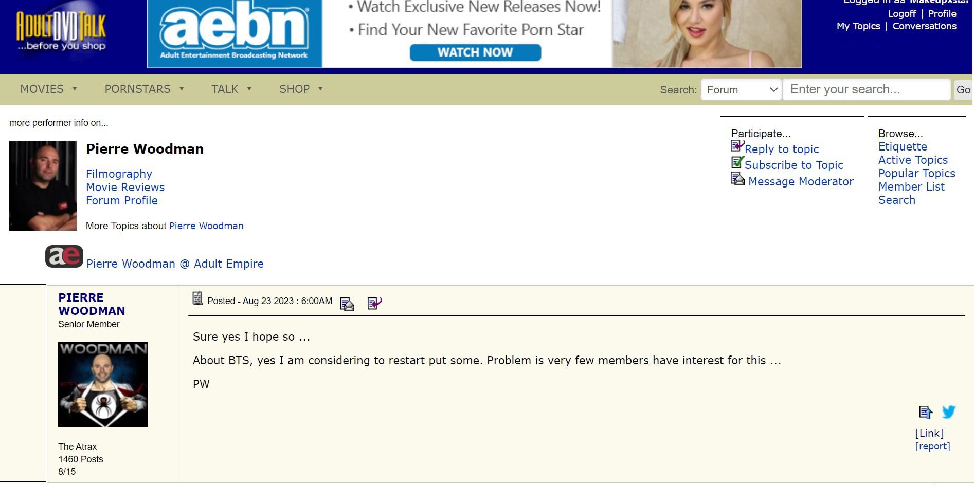 With that in mind, I don't think the member who Pierre is answering in the AdultDVDTalk forum is in for much luck.