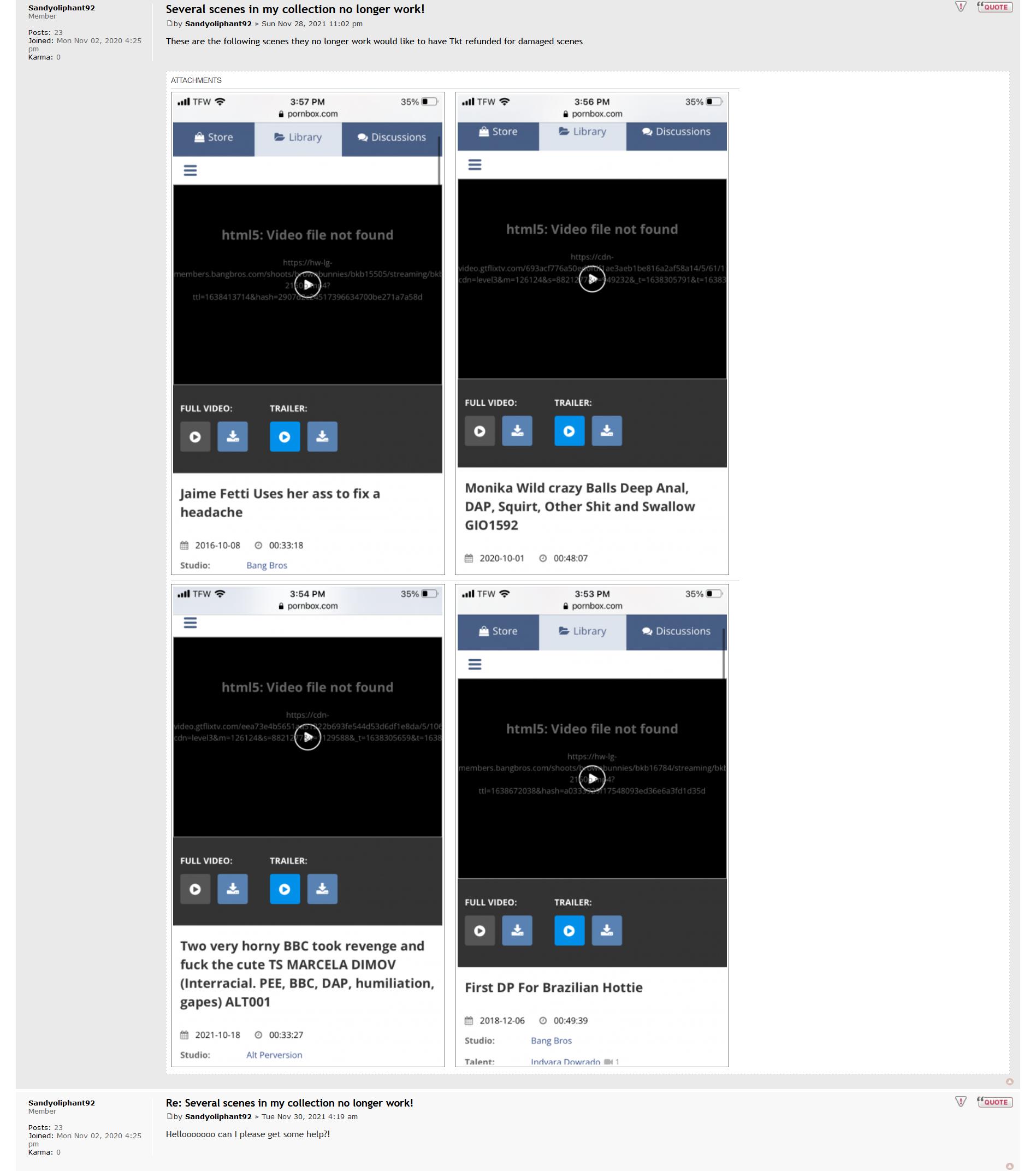I know alot because you posted the screenshots showing this you cheating dumbass :) I've seen your type before: no-good swindling thugs who get away with such rather easily executable scams successfully on a few occasions already (because staff isn't being alert), and who then continue to push their luck like you until they get BUSTED! Additionally, due to the amount of inquiries staff weren't able to connect the dots. Mod/Admin already said on a few occasions that they do not have issues with all of those videos you have been complaining about in the past and now. Nobody else is having issues with all these scenes you want a refund for, that is, after they downloaded them or after finding out that they are not worthy as jack off material. :p Thus: user fault/fraud. Besides, prepaid connection on a mobile phone is slow as fuck, even web/vga stream. Fact of the matter is that the scenes are not working because of your own incompetent dumb pea brain or your intentional cons.