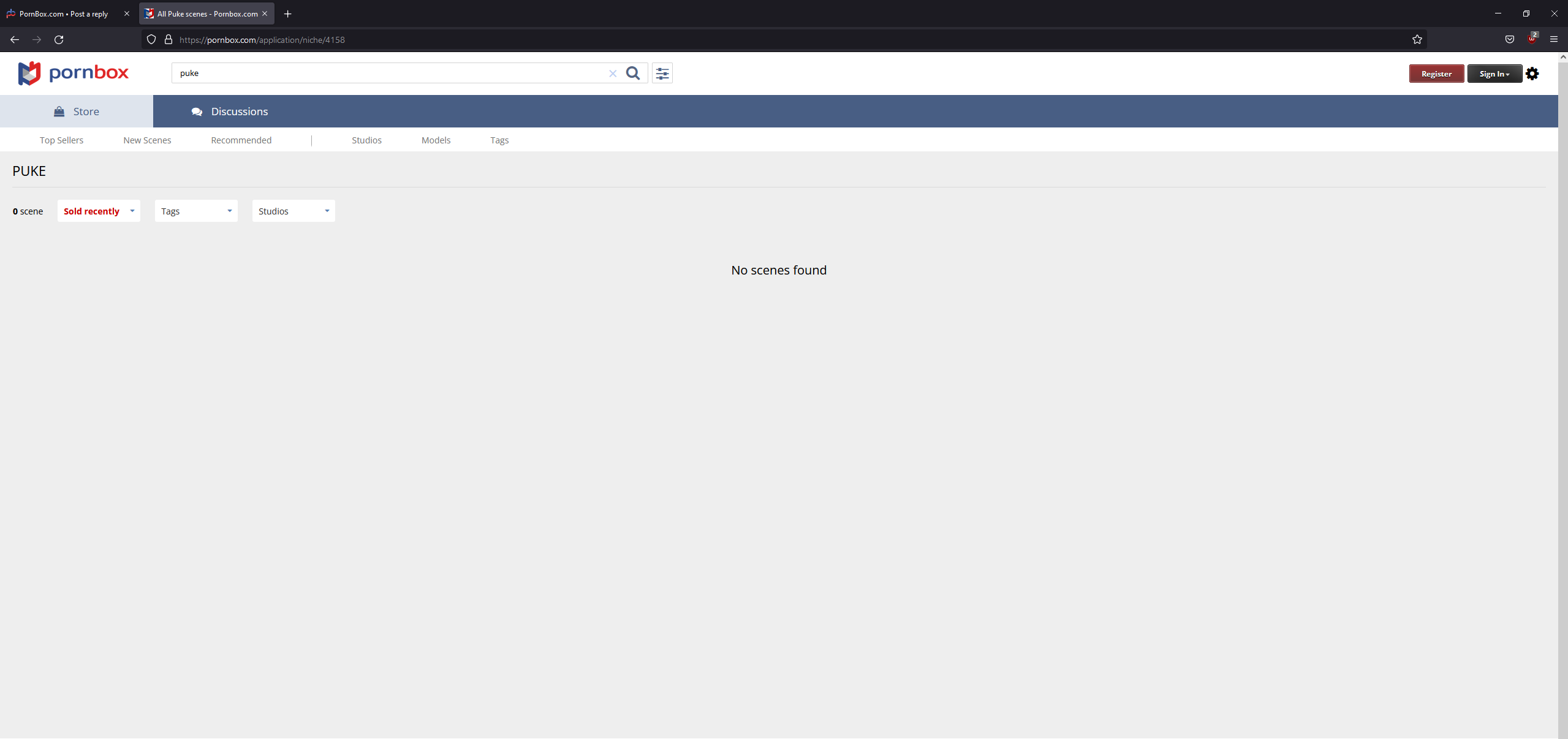 Scenes that contain puke are not found in a) models pornbox page nor in b) the respective studio pornbox page any longer.