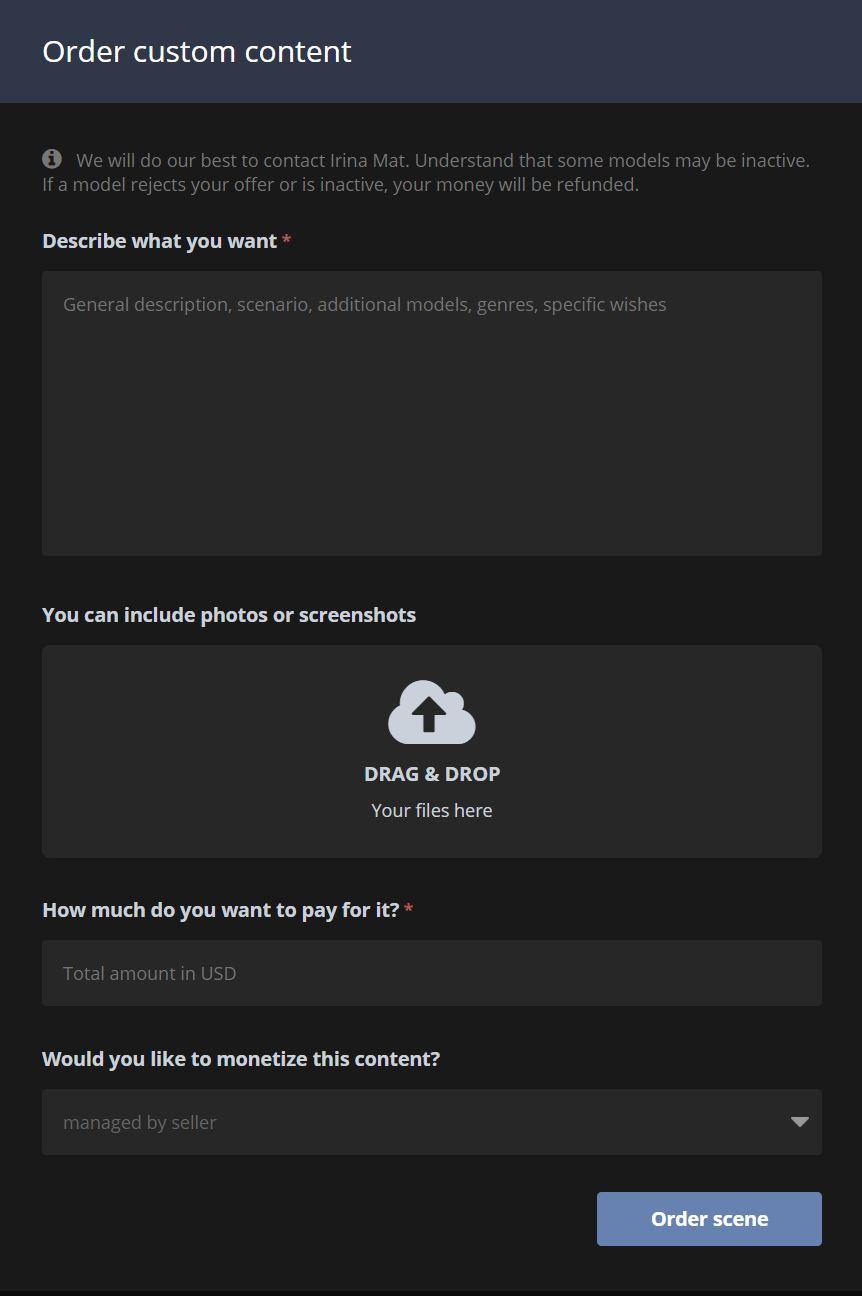xxx wrote:We have recently added a new feature to directly order content from models and studios. You can find a link at the top of their pages.