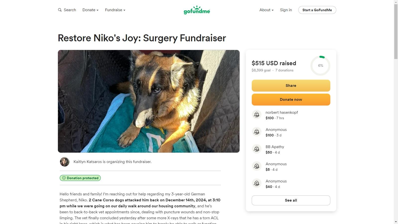 her dog got injured and she needs 8400$