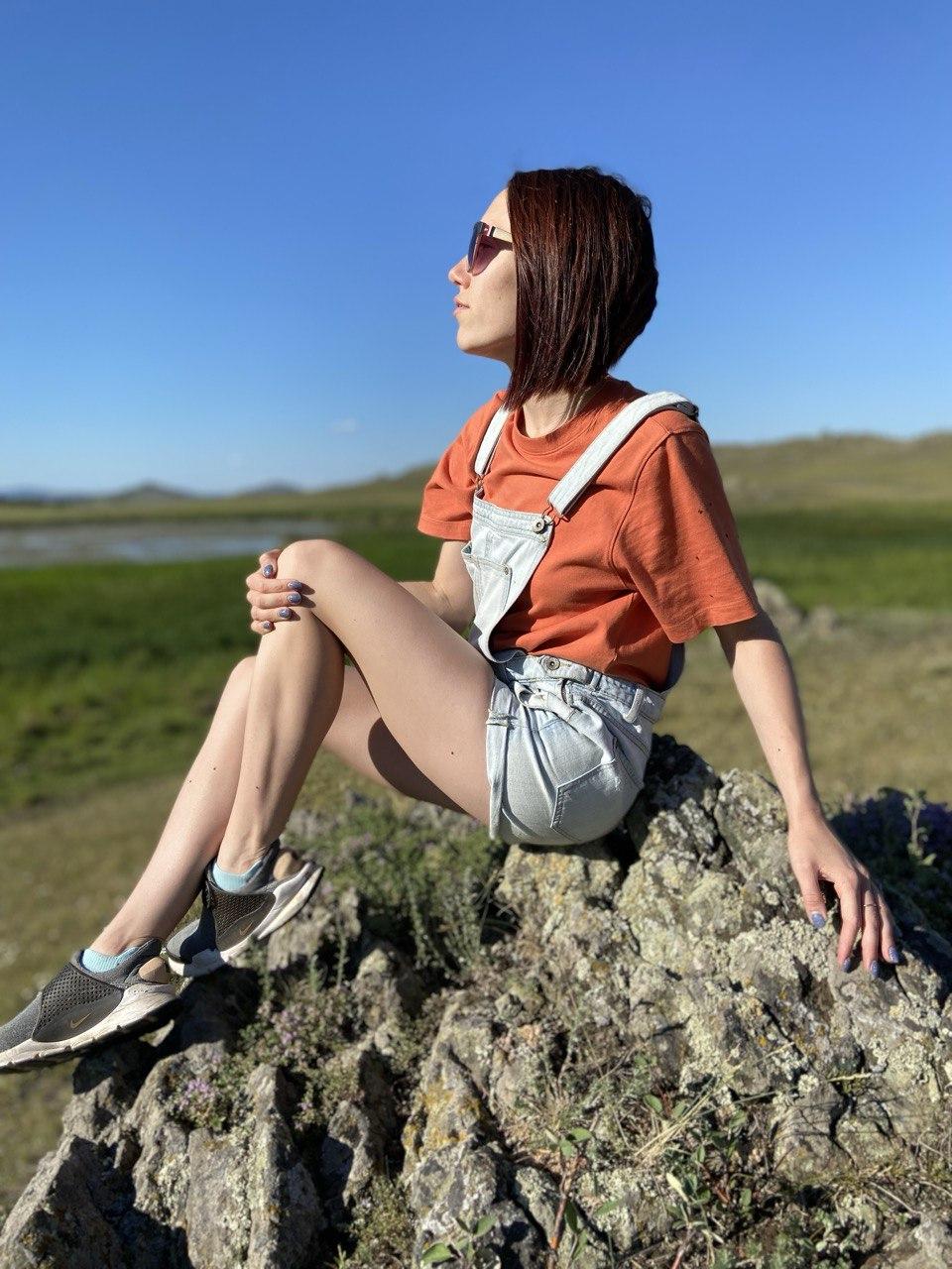 Indy teasing with her tits during her hiking hobby. (private foto)