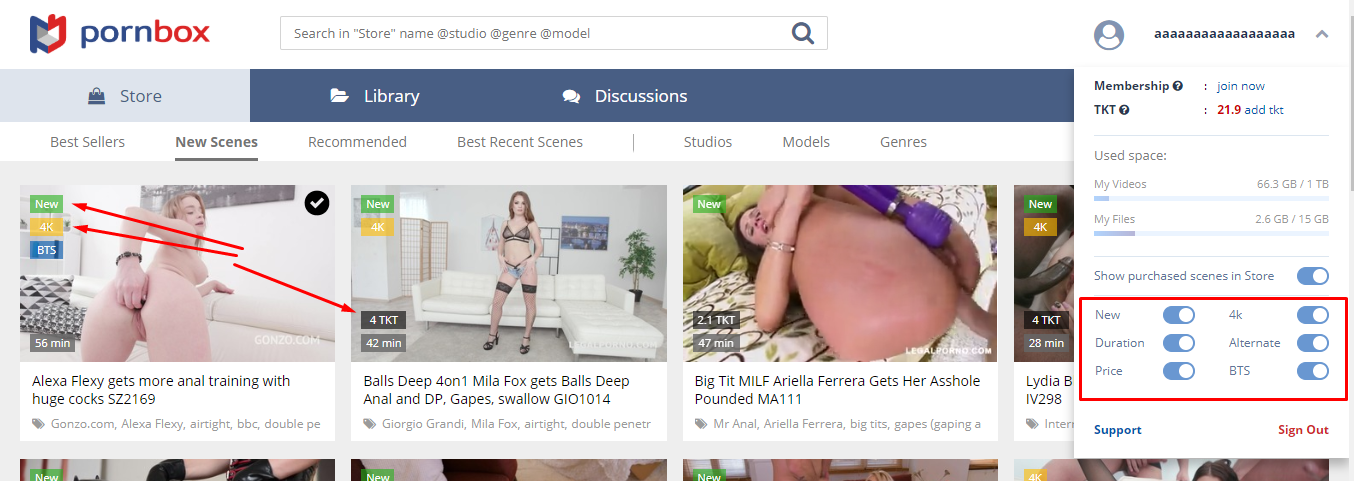 From now on you can select new thumbnail labels. You can find this option under the dropdown menu in the top right of your pornbox.