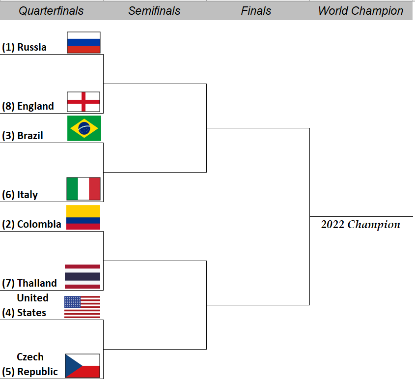 Thanks! I did seed the countries with Russia being the coveted #1 seed thus the favorite, felt they deserved it. But just like in the world sports, you have to play the game on the field...