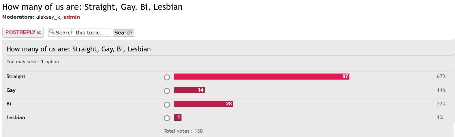Ah thank you. So at that time, not so close to 50% but the site must be at 50% gay by this time, no? How many years ago was that poll constructed?