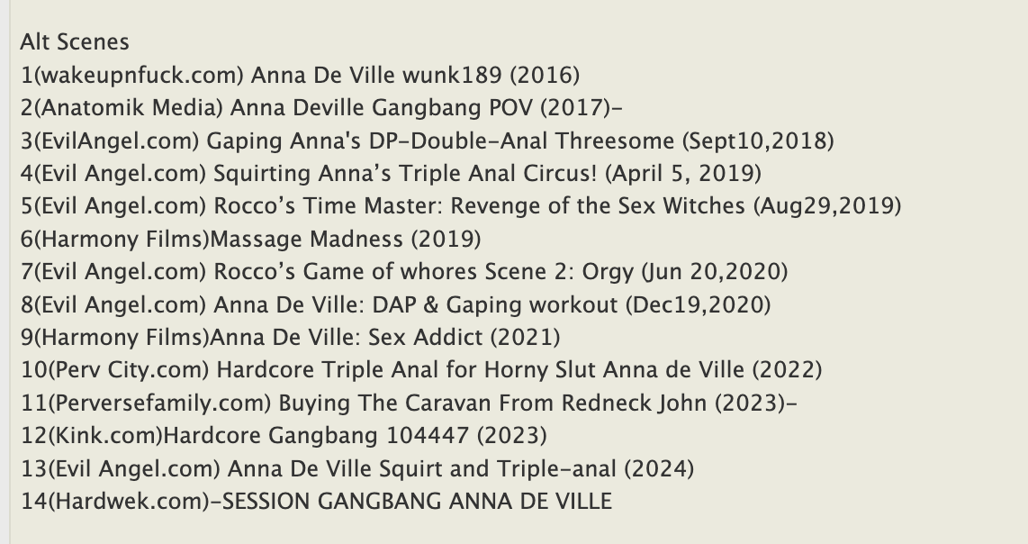 -“American Slut Anna De Ville gets DAP'd and Annihilated by John Strong and Steve Holmes AB002” same as (Bang Bros) Double penetration For Anna De Ville same as (Bang Production) Both My Holes 2