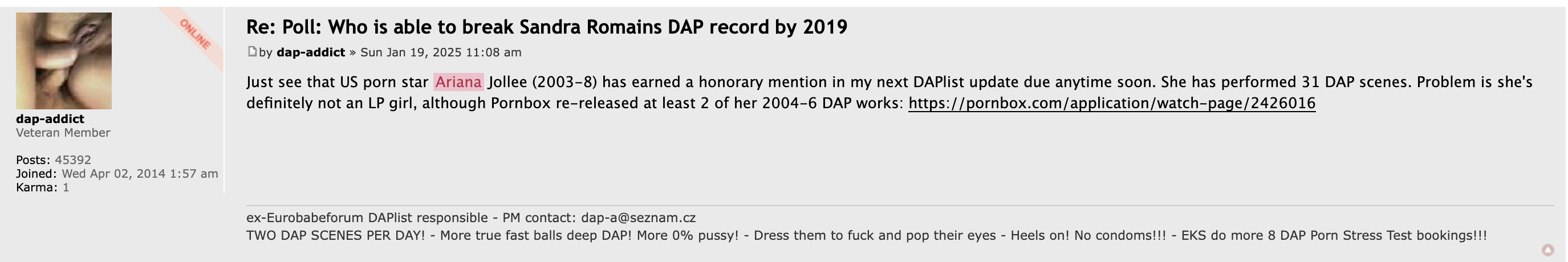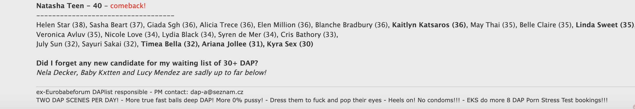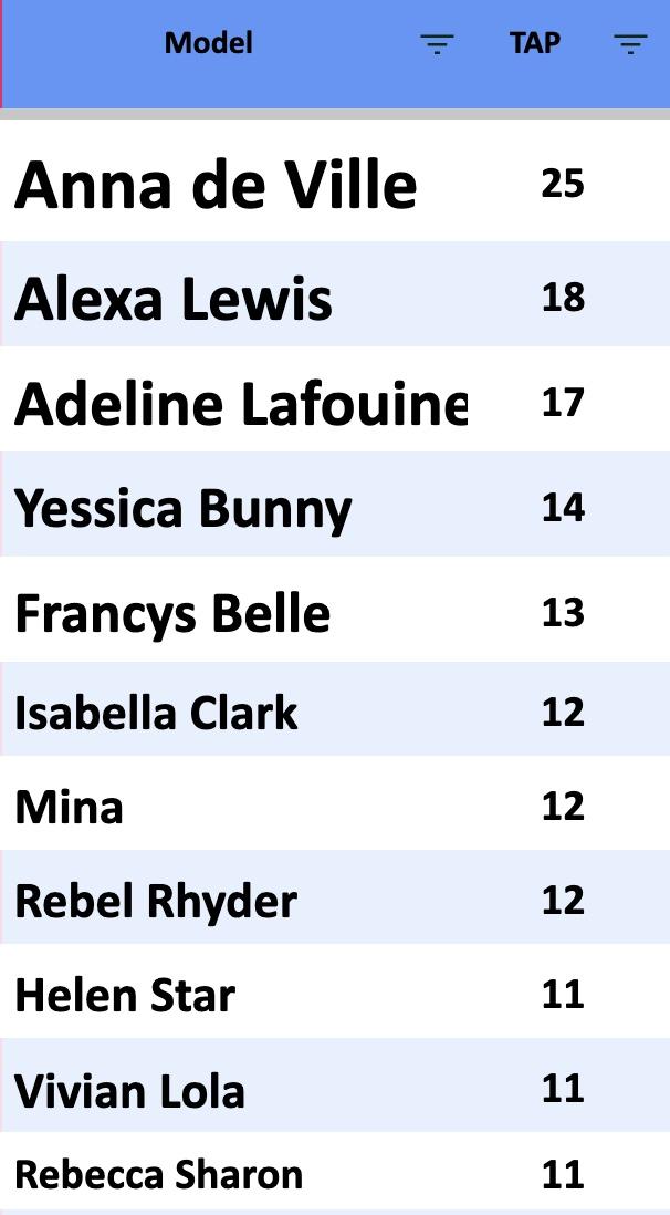 Dap that observation is pretty obvious. Anna and Brittany have held the number two spots for more than 4years almost 5years plus. You don’t have to do a dap list to know theses two are at the front of the pack. They literally are some of the most featured models on this site. The problem comes when you are doing top 40 or so and forget former dap legends and miscounted with repeating dap scenes which exclude hard working note worthy girls. For example it took you till Nov of 2024 to put Belle Claire on your list, then Feb of this 2025 to finally put Linda Sweet and Timea Belle here. But you still haven’t put up Arwen Gold. Arwen Gold, Linda Sweet, and Belle Claire ran the site and were the most popular girls of the earlier 2010’s along with a few others that are apart of dap royalty which were forgotten for so long on your list.