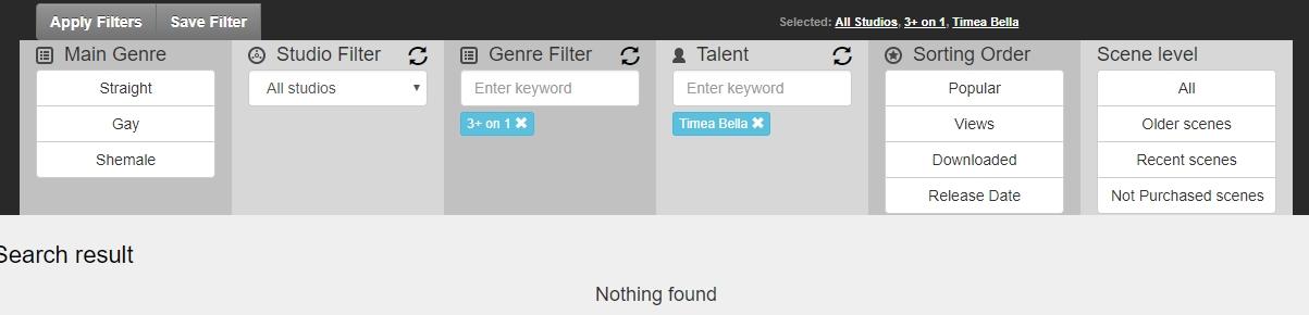 dpconnoisseur1 wrote:Please fix the "Scene Level" --> "Not Purchased Scenes" to make it easier to find scenes that you have not purchased yet :cool: I know I buy a lot of scenes on LP but I haven't purchased every scenes as this filter implies.