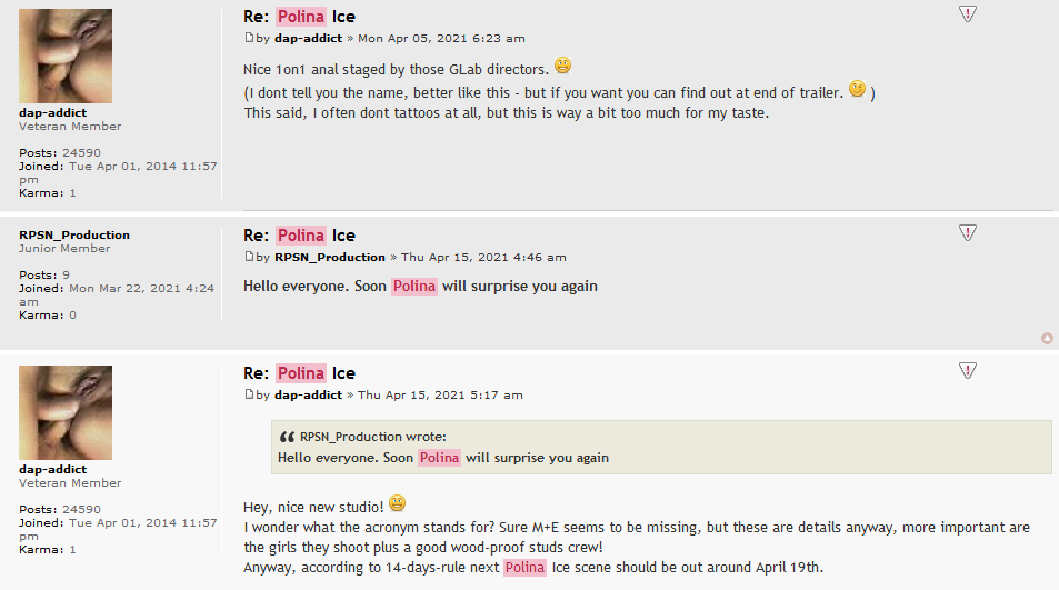 RPSN = Polina Ice's debut released at the beginning of this month (in my top 3 of 2021 scenes).