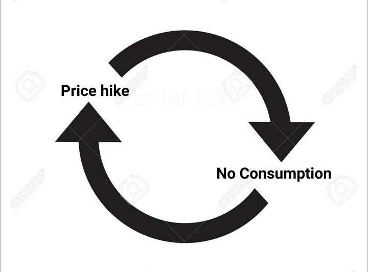 Consumption will decrease if the value of money decrease. So here the cause of price rise might be both(not selling, high production cost)