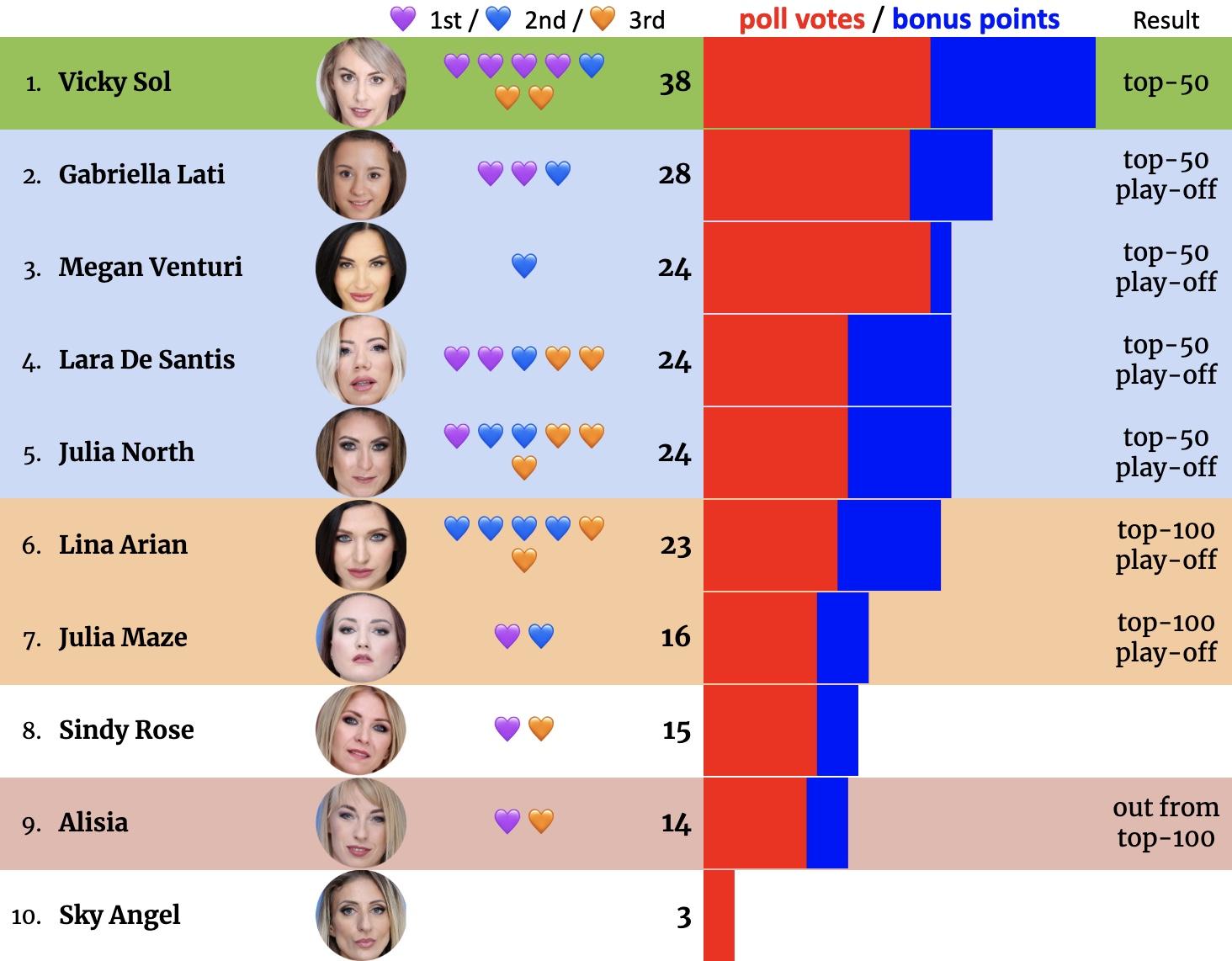 You may also mention other girls you have voted for, but only first three will get bonus points.