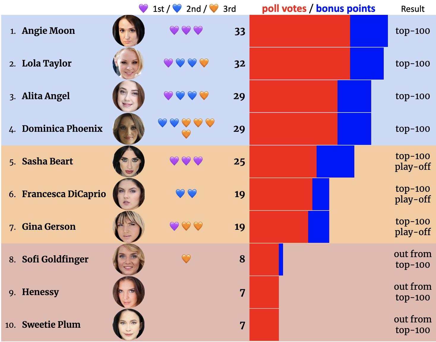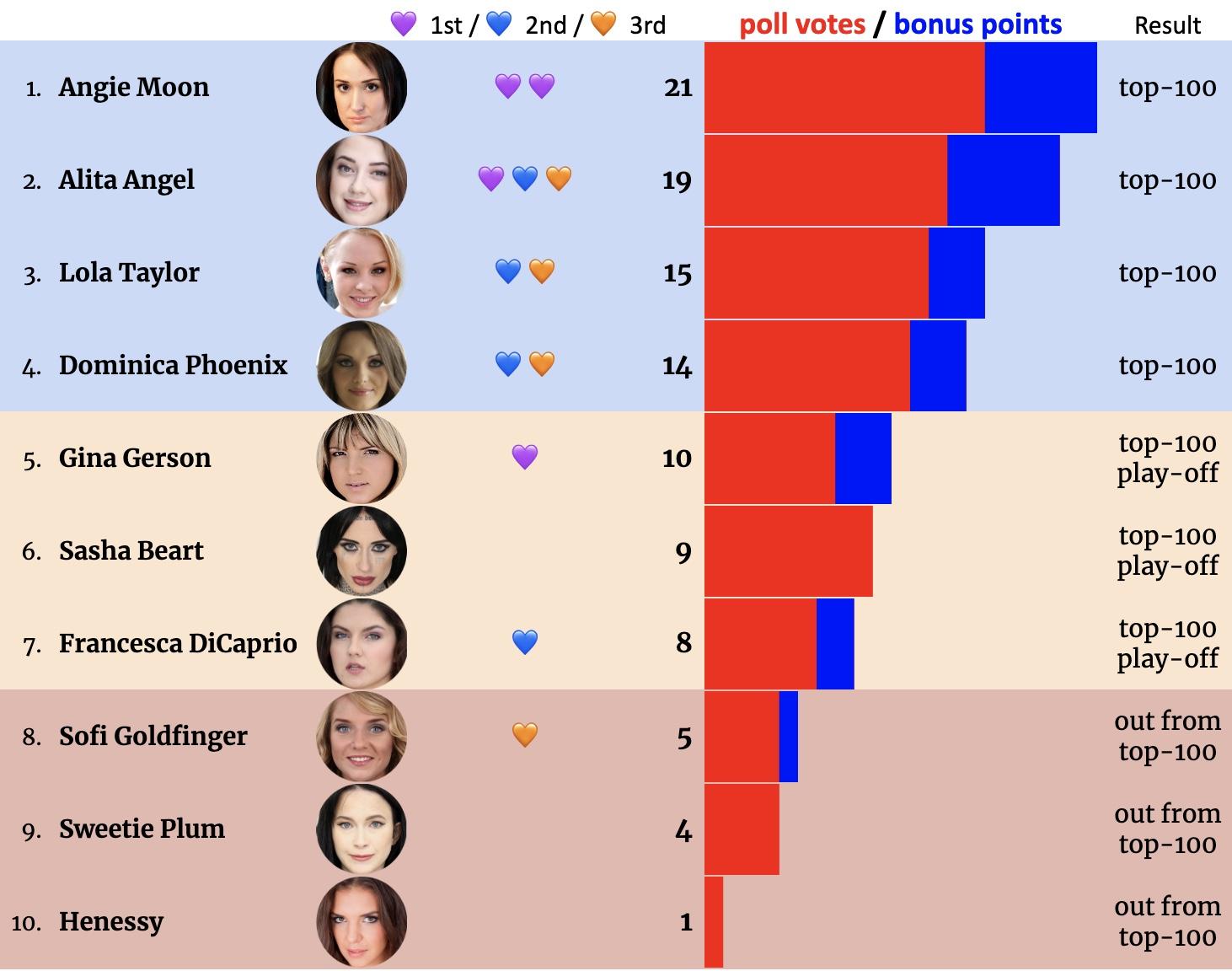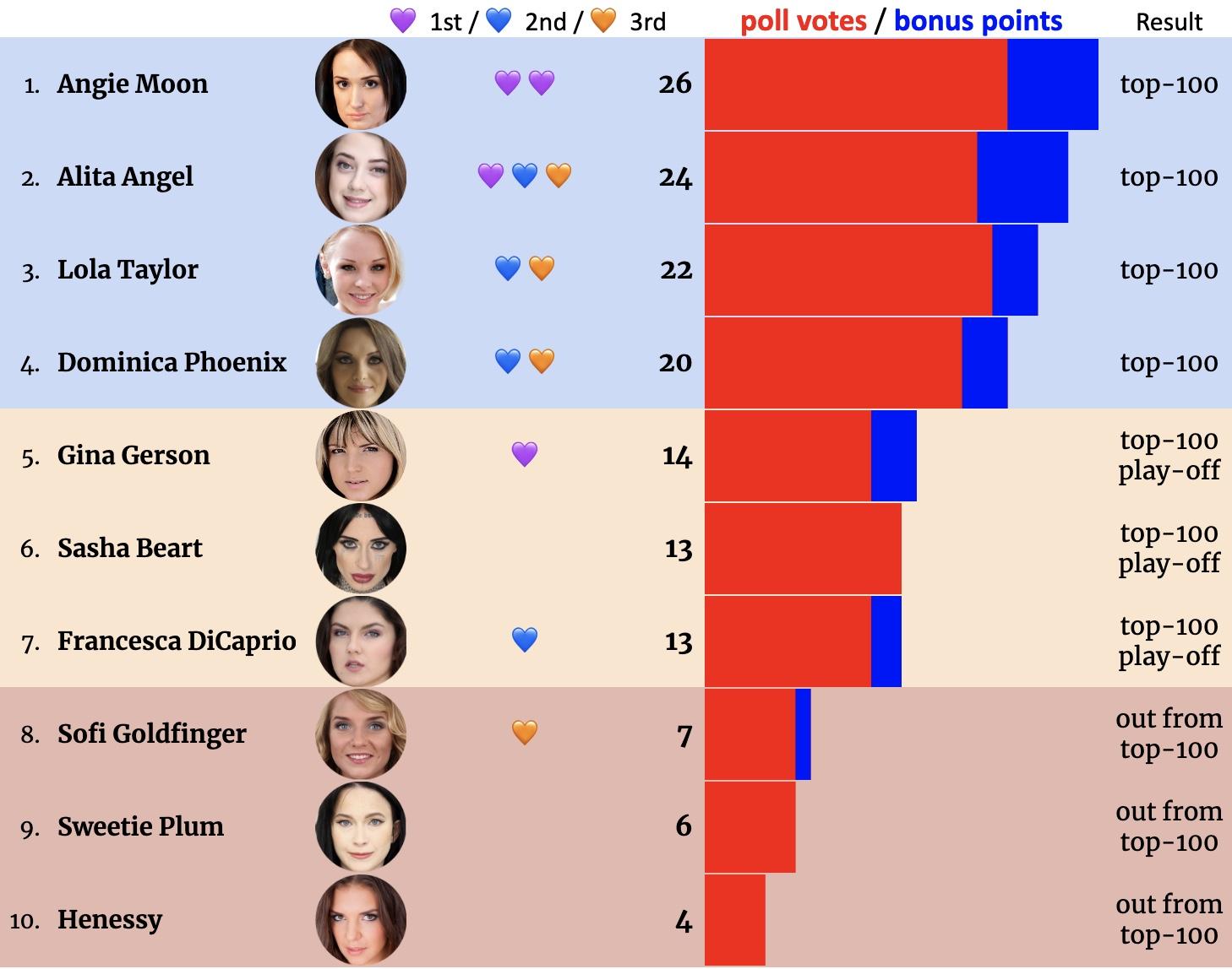 Angie Moon, Lola Taylor, Alita Angel and Dominica Phoenix save their places in top-100.