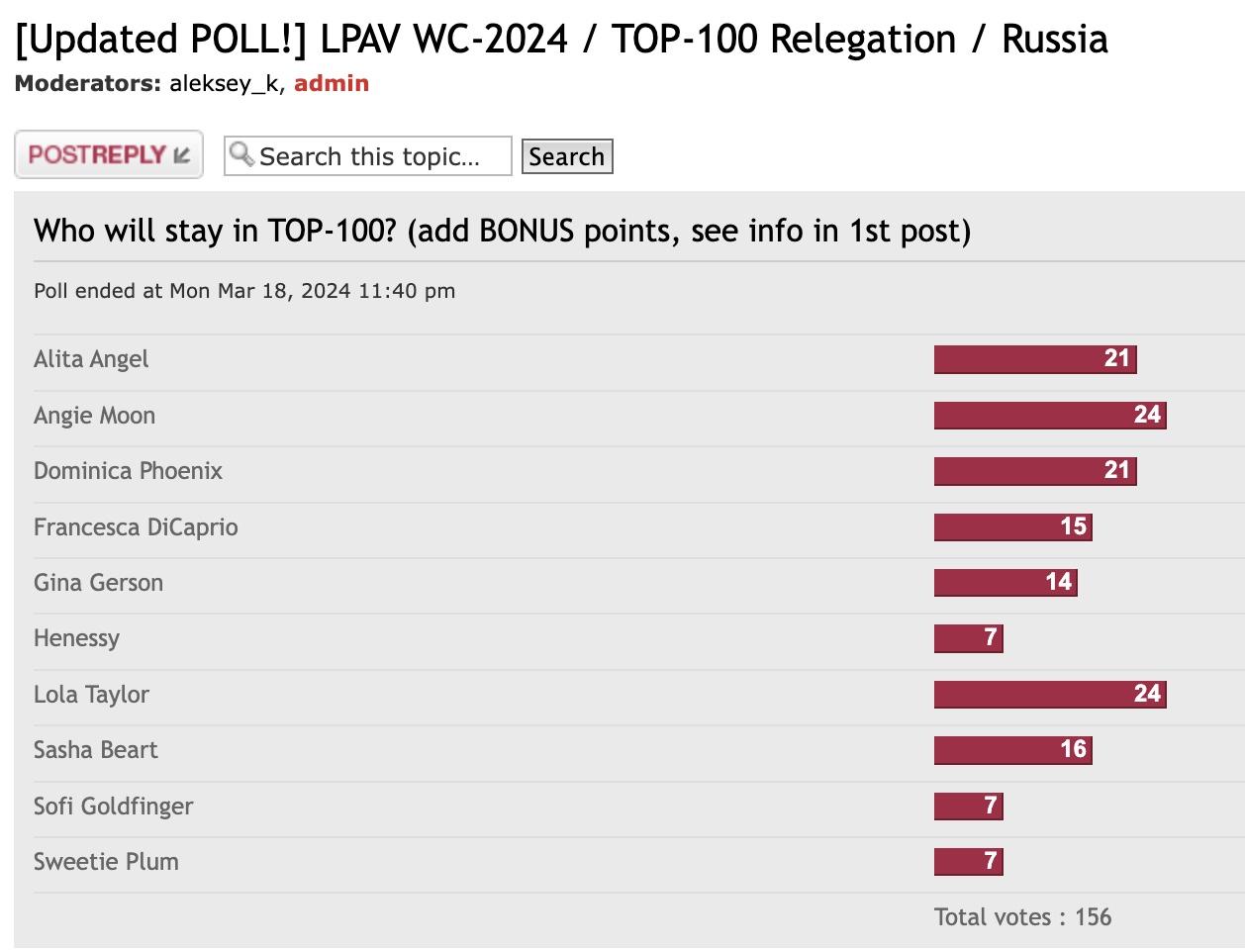 Girls from this region who stay in top-100 without polls because they were quite successful in WC-2023 and are not LP-active now to compete for more: Kitty Doll, Evelina Darling, Venera Maxima